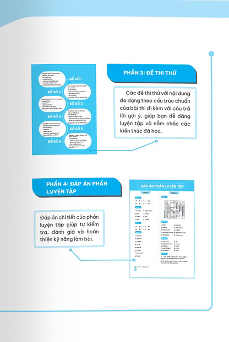 Các đề thi thử với nội dung đa dạng theo cấu trúc chuẩn của bài thi đi kèm với câu trả lời gợi ý, giúp bạn luyện tập thành thạo và nắm chắc các kiến thức đã học.