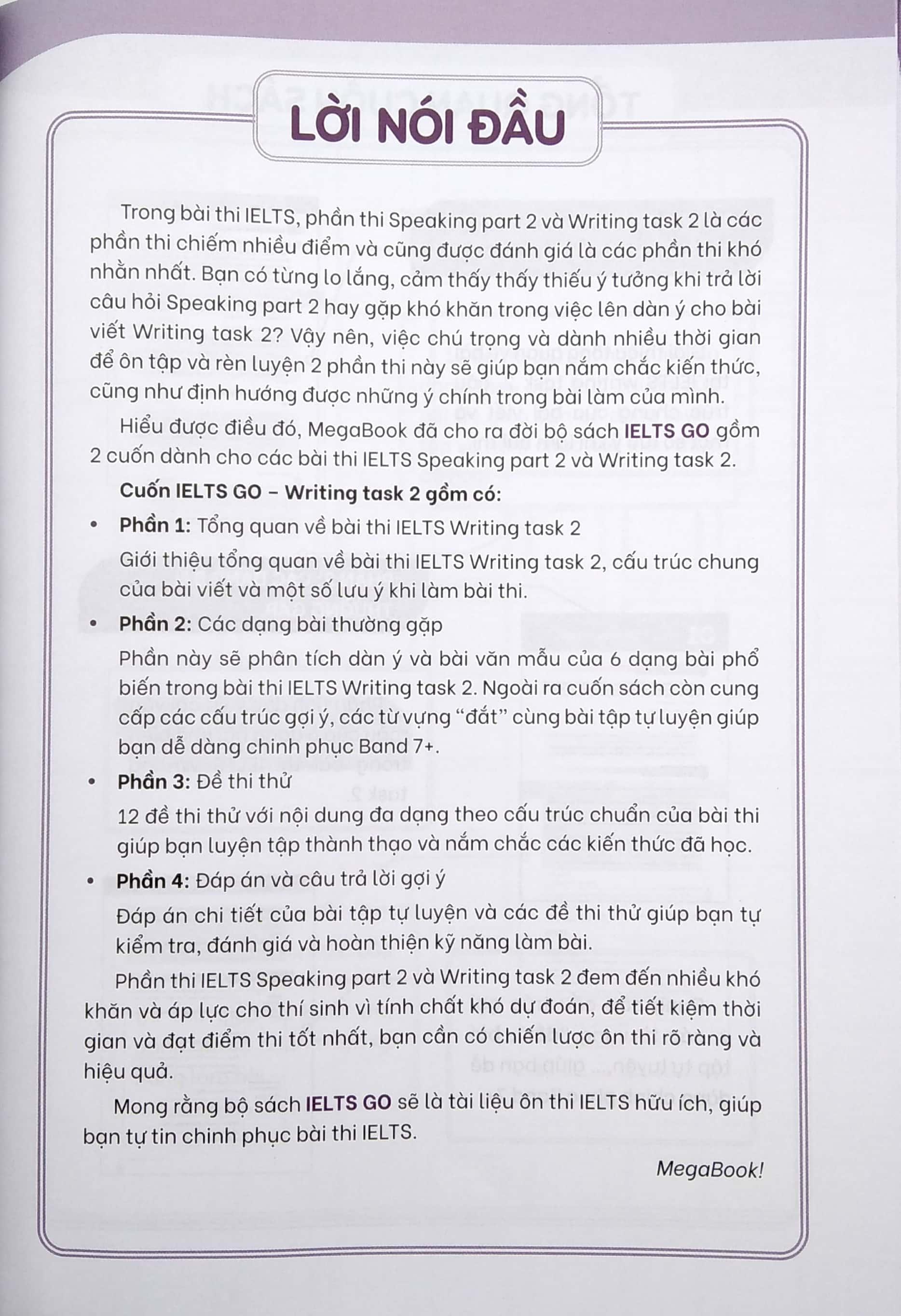 Nội dung cuốn sách "IELTS GO - Writing task 2 - Dàn ý mẫu cho tất cả các dạng bài" được hệ thống một cách khoa học, logic: