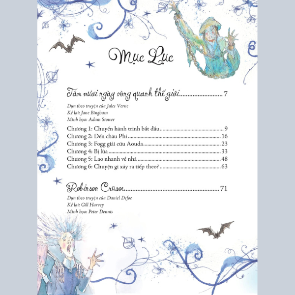 Qua những câu chuyện với lời kể hấp dẫn và tranh minh họa nhiều màu sắc, độc giả sẽ được hòa mình vào chuyến chu du vòng quanh thế giới trong tám mươi ngày, cùng Robinson Crusoe trải qua những tháng ngày khốn khó nơi hoang đảo, tới lâu đài Canterville và xem hồn ma bí ẩn năm trăm năm tuổi đã phải đau đầu đối phó với những nhóc tì “siêu quậy” như thế nào.