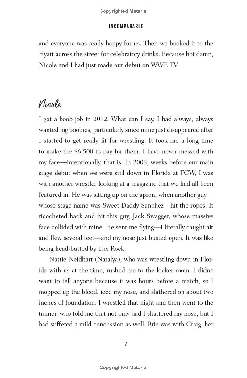 Incomparable THE INSTANT NEW YORK TIMES BESTSELLER A raw, honest, and revealing co-memoir by Brie and Nikki Bella: twin sisters, WWE Hall of Fame inductees, and stars of the hit E! shows Total Bellas and Total Divas. As twins, the