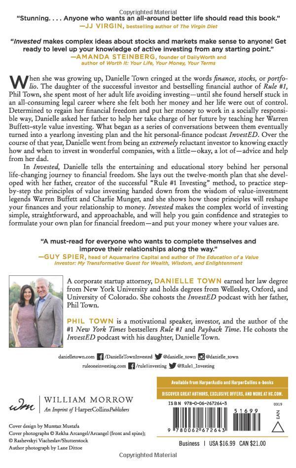 In Invested, Danielle shows you how to do the same: how to take command of your own life and finances by choosing companies with missions that match your values, using the same gold standard strategies that have catapulted Warren Buffett and Charlie Munger to the top of the Forbes 400. Avoiding complex math and obsolete financial models, she turns her father’s investing knowledge into twelve easy-to understand lessons.