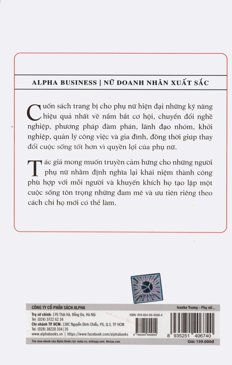 ✨Ivanka Trump - Phụ Nữ Hiện Đại Viết Lại Luật Thành Công: Cuốn Sách Trang Bị Cho Phụ Nữ Hiện Đại Những Kỹ Năng Hiệu Quả Nhất Về Nắm Bắt Cơ Hội, Chuyển Đổi Nghề Nghiệp, Phương Pháp Đàm Phán, Lãnh Đạo Nhóm, Khởi Nghiệp, Quản Lý Công Việc Và Gia Đình (Quà Tặng Tickbook)