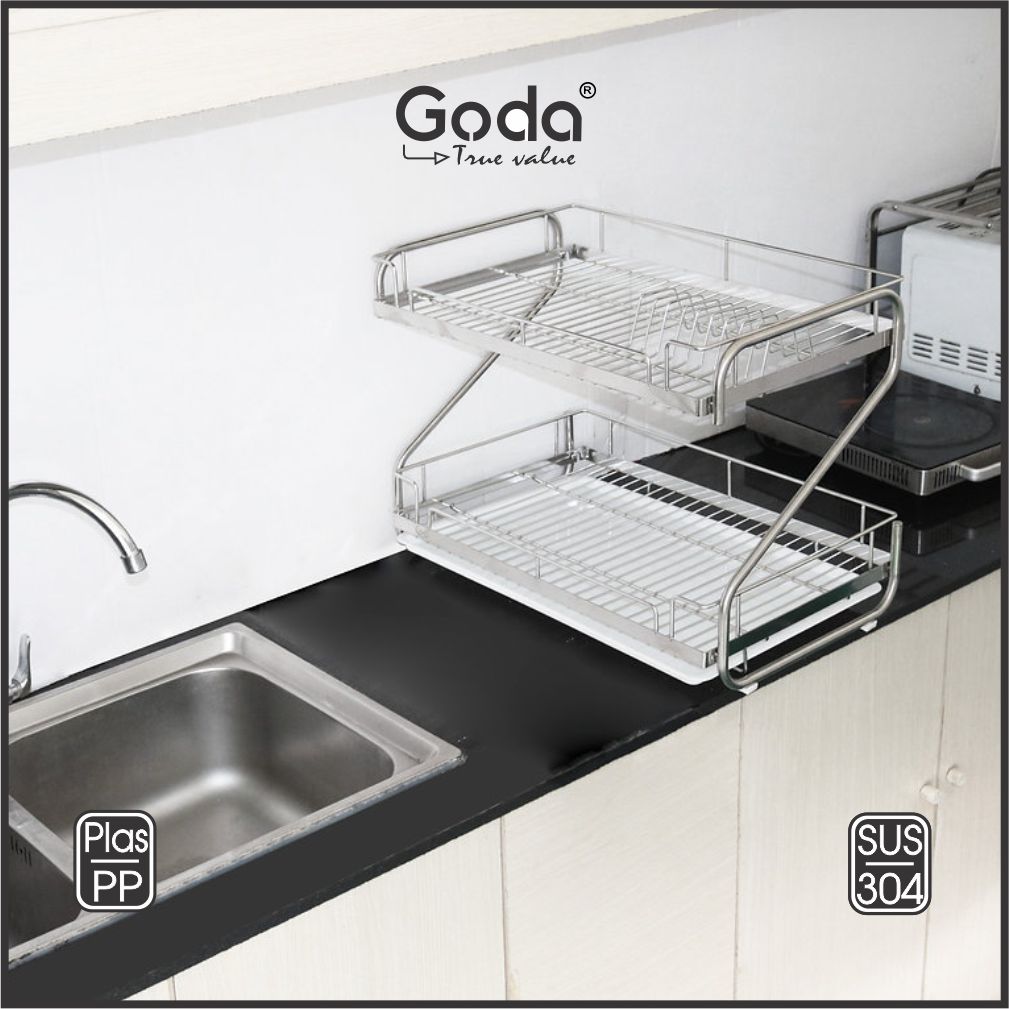 SẢN PHẨM: KỆ ÚP BÁT ĐĨA 2 TẰNG PROTA INOX 304 - KỆ ÚP CHÉN HÌNH CHỮ S CÓ KHAY HỨNG NƯỚC
