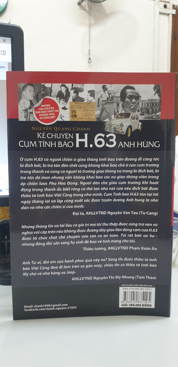 Đó cũng là lý do ra đời của tập sách "Kể chuyện cụm tình báo H.63 anh hùng" của tác giả Nguyễn Quang Chánh. Hơn 200 trang sách là những câu chuyện rất thật, rất đời của các cựu tình báo trong cuộc chiến chống Mỹ trước đây và cuộc sống vui buồn, thăng trầm sau chiến tranh được chính những người hùng trong cuộc kể lại với tác giả.
