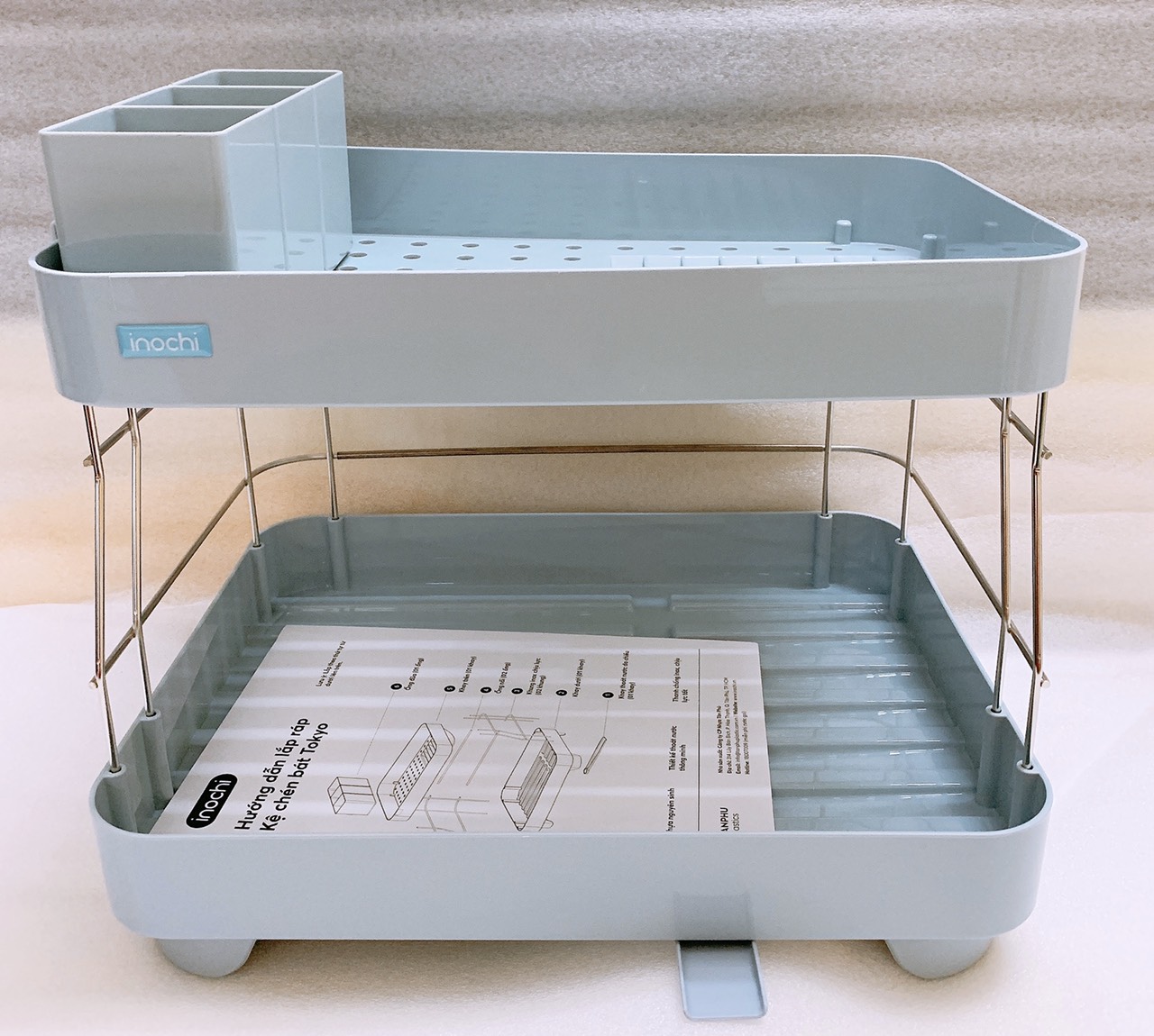 ✨Kệ Để Chén Bát Nhựa Inox 2 Tầng Inochi Có Khay Thoát Nước Thông Minh Dùng Để Làm Giá Úp Bát Đĩa Chén Đũa Trên Chậu Rửa ( Giao màu ngẫu nhiên ) - ANTH250
