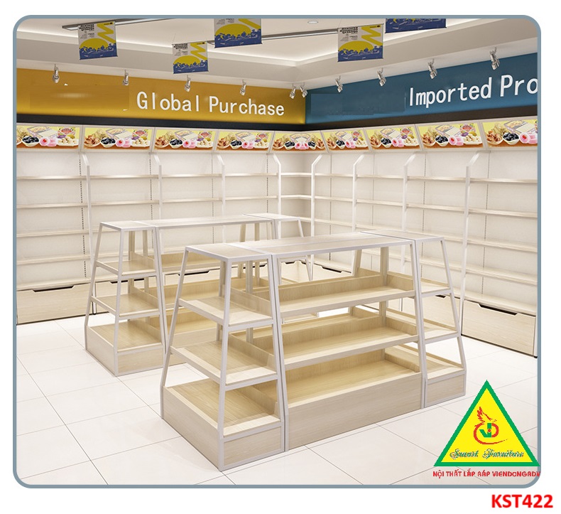 Kệ gỗ trưng bày rau củ hoa quả được sử dụng phổ biến nhất trong các siêu thị, cửa hàng tiện lợi vì thiết kế đa dạng cũng như tiện ích nó mang lại. Chúng ta đều biết rằng rau củ, hoa quả là những nông sản có đặc điểm tươi sống, dễ bị hư hỏng dập nát cho nên việc bảo quản chúng là vô cùng quan trọng và sự ra đời của mẫu kệ này cực kỳ hữu ích.