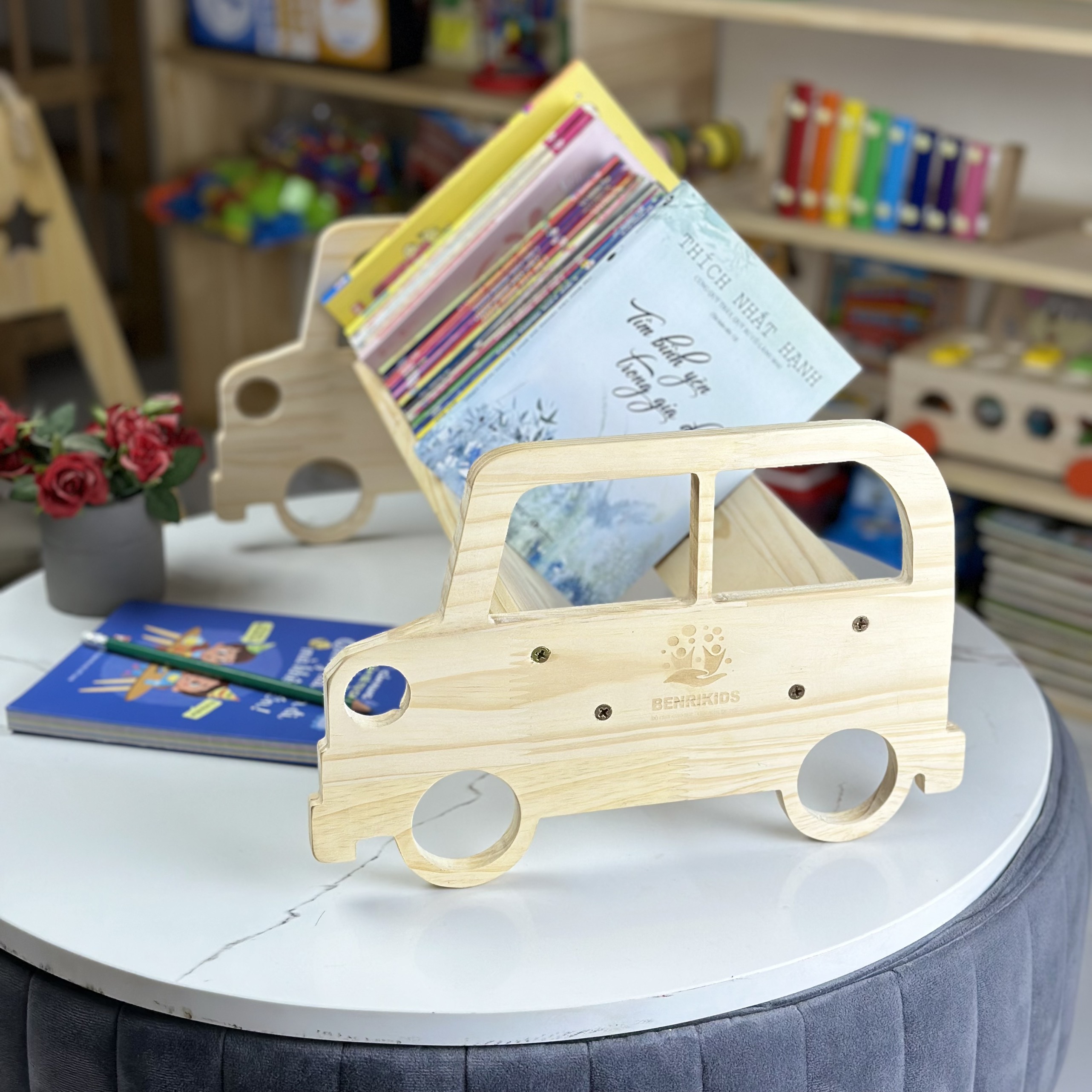 KỆ SÁCH ĐƯỢC SẢN XUẤT TRỰC TIẾP TẠI XƯỞNG BENRIKIDS-QUÝ ĐỐI TÁC THẦY CÔ TRƯỜNG MẦM NON MUỐN LÀM Kệ được chế tạo từ gỗ thông nhập khẩu trơn mịn an toàn không như gỗ