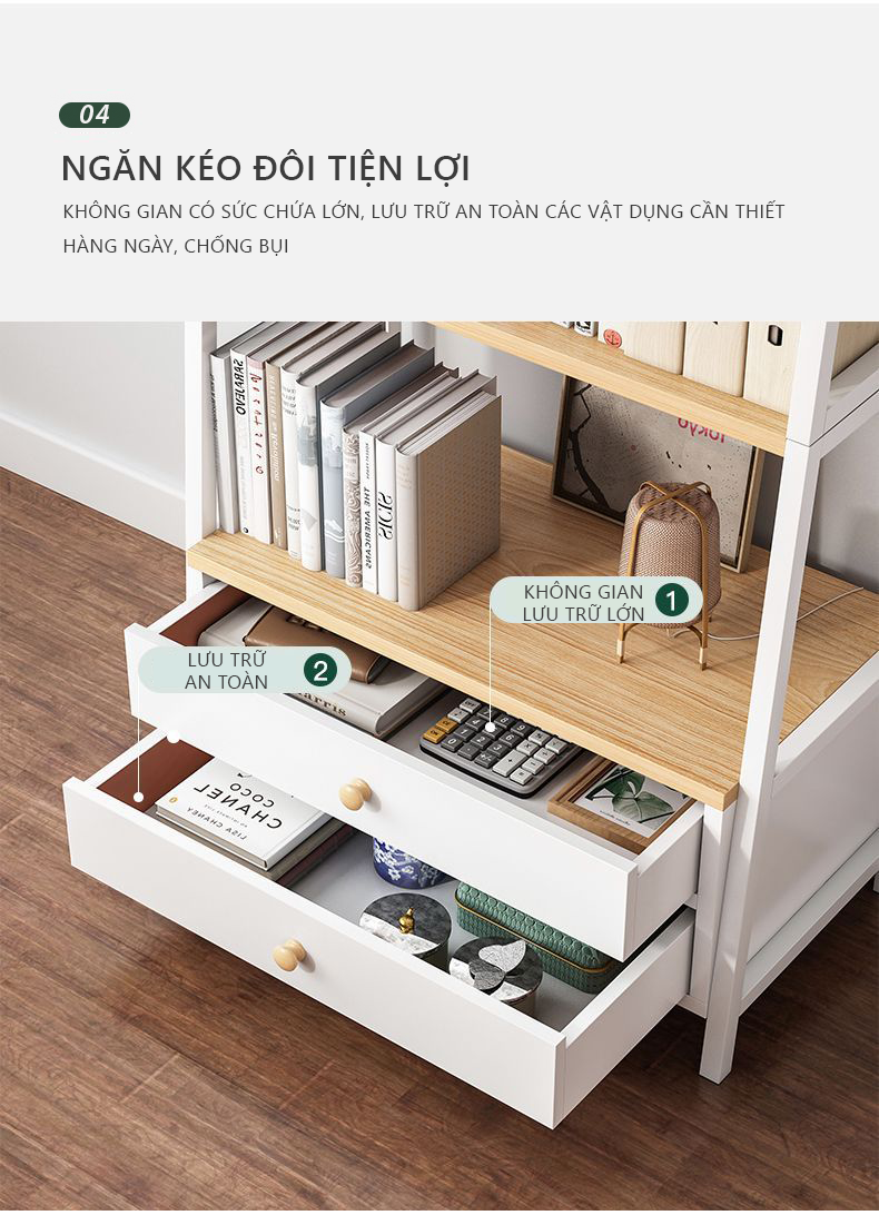 Review bàn làm việc tích hợp kệ sách đa năng GM160