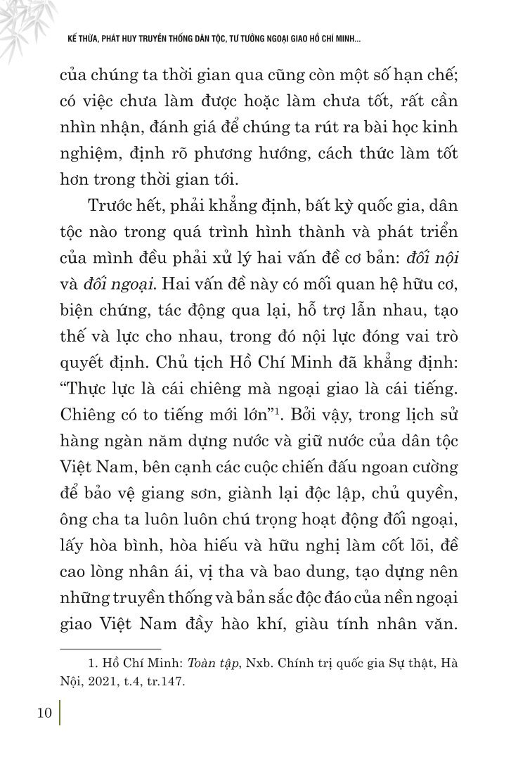 ✨Kế thừa, phát huy truyền thống dân tộc, tư tưởng ngoại giao Hồ Chí Minh, quyết tâm xây dựng và phát triển nền đối ngoại, ngoại giao toàn diện, hiện đại, mang đậm bản sắc "cây tre Việt Nam'' (bản in 2024)