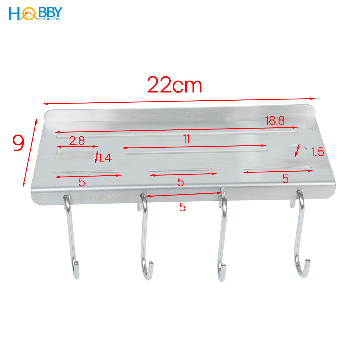 Kệ treo dao kéo Inox 304 có 4 móc treo dán tường Hobby home decor KDT Thông tin kỹ thuật - Chất liệu: Inox 304 xước không rỉ sét - Kích thước tiêu chuẩn: 22x9x6.5cm