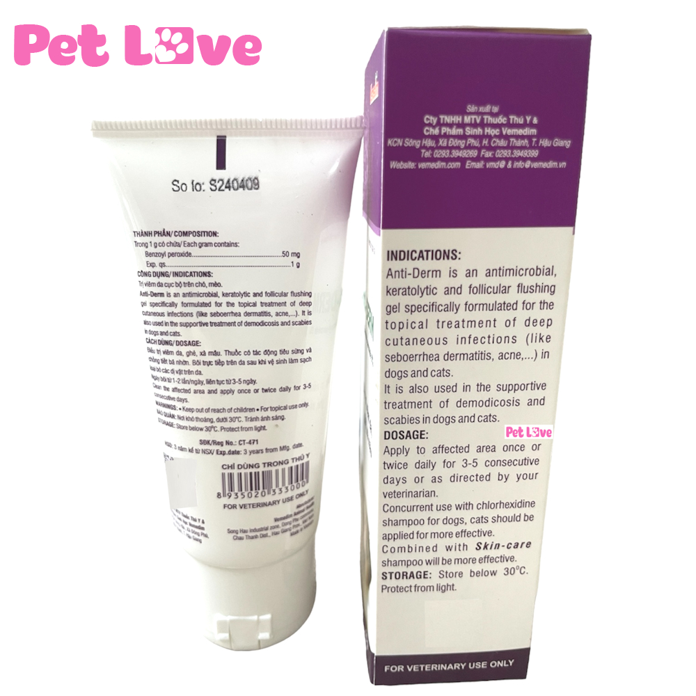 ANTI DERM - Thuốc bôi trị ghẻ, viêm da, xà mâu cho chó mèo Xudapet 0974505592