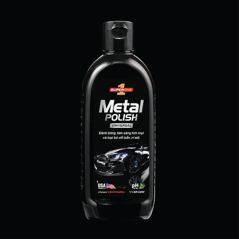 LÀM SẠCH, SÁNG BÓNG, CHỐNG RỈ SÉT KIM LOẠI Kem   Đánh Bóng Kim Loại Super One Metal Polish là một sản phẩm không thể thiếu   trong việc chăm sóc ô tô của bạn. Với khả năng làm sáng bóng các bề mặt kim   loại như lưới tản nhiệt, mâm vành, ốp trang trí, sản phẩm này nhanh chóng và   dễ dàng loại bỏ hiện tượng oxy hóa, vết rỉ sét, trầy xước nhỏ và các vết ố   khó chịu khác. Đặc biệt, sản phẩm không chứa axit an toàn cho tất cả các loại   bề mặt kim loại, bao gồm chrome, nhôm, đồng và thép không rỉ. Sản phẩm này   không chỉ làm sạch và đánh bóng mà còn đảm bảo không gây trầy xước, để lại lớp   bóng như gương. Công thức đặc biệt chứa các chất ức chế ăn mòn giúp ngăn ngừa   sự hình thành lại rỉ sét. Sử dụng dễ dàng và hiệu quả, giúp duy trì sự rạng   ngời của ô tô bạn trong thời gian dài.   Đặc Tính Sản Phẩm