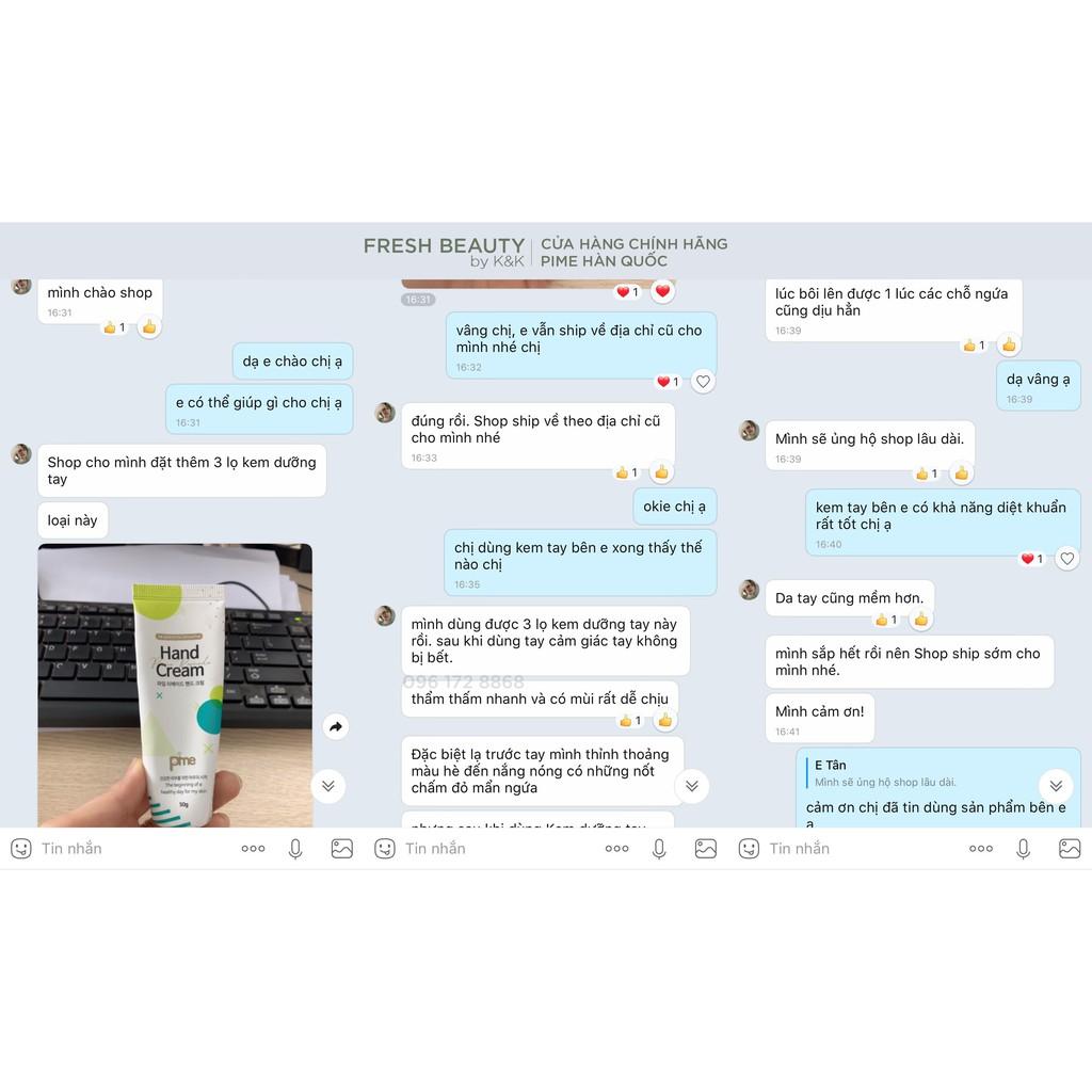 Ngoài ra, nhờ chức năng kháng khuẩn nên kem dưỡng da tay Pime còn dùng được với các làn da tay bị mẩn ngứa hay viêm da cơ địa Sản phẩm nhập khẩu chính hãng từ Hàn Quốc và được Bộ Y Tế cấp phép lưu hành. Fresh Beauty by K&K ra đời với sứ mệnh là kênh phân phối chính thức những dòng sản phẩm chăm sóc sắc đẹp, sức khỏe có nguồn gốc thiên nhiên, xuất xứ rõ ràng, chất lượng nhất từ Nhật Bản, Hàn Quốc và các quốc gia khác