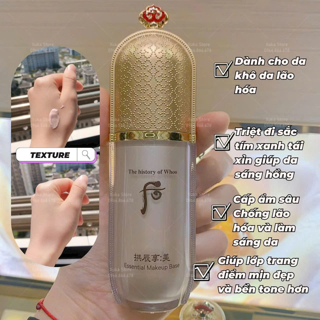 Mua tại Tiktok- Kem lót Whoo Mi Essential Primer Base che khuyết điểm mịn màng. Với các thành phần thảo dược được chiết xuất từ thiên nhiên giúp làm dịu và mát da, đồng thời dưỡng da chống lại các tác động của môi trường xung quanh.