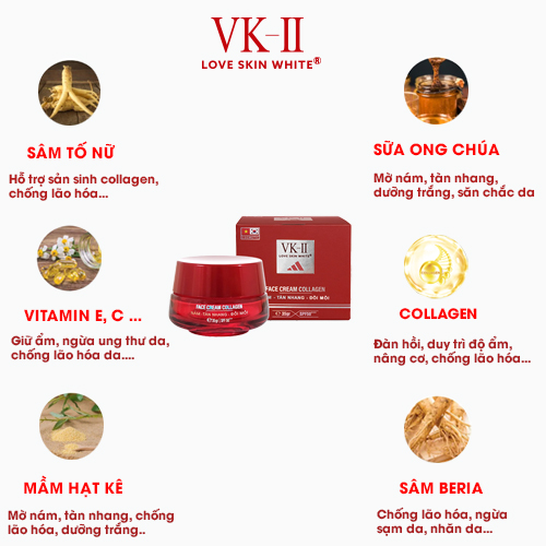Quy cách : - 1 Kem Ngày - 1 Kem Đêm CÔNG DỤNG : - Tăng cường dưỡng trắng bề mặt da - Bổ sung HA cấp nước tăng sinh collagen và elastin giúp da