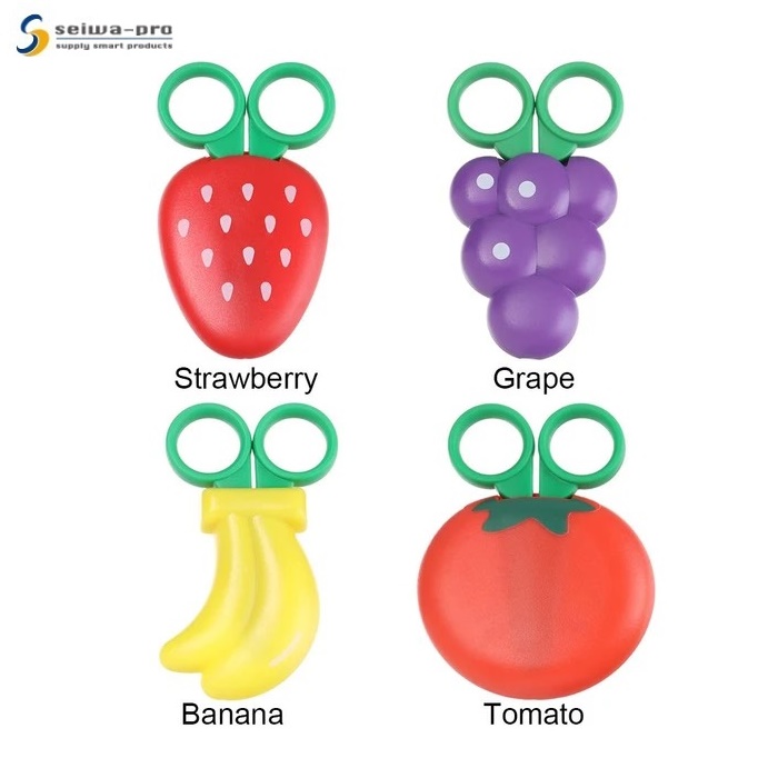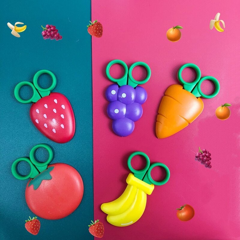 • Với lưỡi kéo nhỏ, lớp bảo vệ hình trái cây xinh xắn, các bé sẽ thích thú khi sử dụng