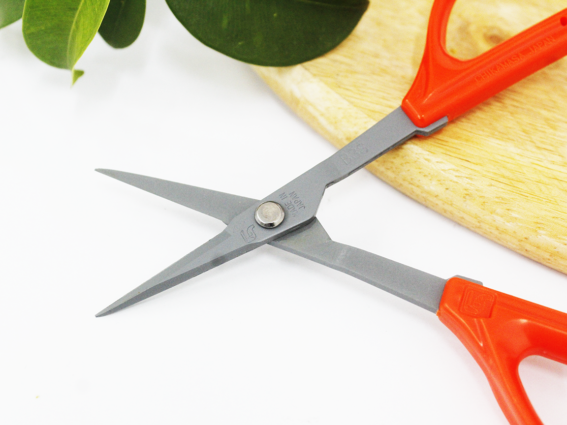 - Nét đẹp và độ tỉ mỉ của kéo cắt nho Nhật Bản Kéo cắt nho Chikamasa là bộ sưu tập thú vị cho chị em thích những chiếc kéo xinh xắn và có độ bén cao. Chikamasa B-300SF là loại kéo dài nhỏ được làm bằng thép carbon phủ Flo chống bám dính, lưỡi cắt đi qua nhau như kéo cắt giấy quen thuộc. Mặt cắt phẳng phiu được mài bằng kỹ thuật tiên tiến cho độ sắc ấn tượng, cắt bén ngọt, sạch sẽ cành hoa, nhánh lá và hoa trái. Tay cầm ABS trên dưới làm rộng và đều nhau xỏ vừa các ngón tay và giúp chị em giữ kéo ngay ngắn . Được chế tạo theo kỹ thuật người Nhật, kéo cắt nho Chikamasa thống nhất và khớp tuyệt đối giữa tay cầm và lưỡi cắt. Khi cầm nắm không có cảm giác lỏng lẻo hay tiếng rít ở chỗ tiếp xúc, nhờ đó thao tác cắt tỉa rất êm ái nhẹ nhàng. Lưỡi cắt chống gỉ sét tuyệt đối cùng tay cầm cứng cáp, vừa vặn với đôi bàn tay xinh xắn bé nhỏ của chị em phụ nữ.