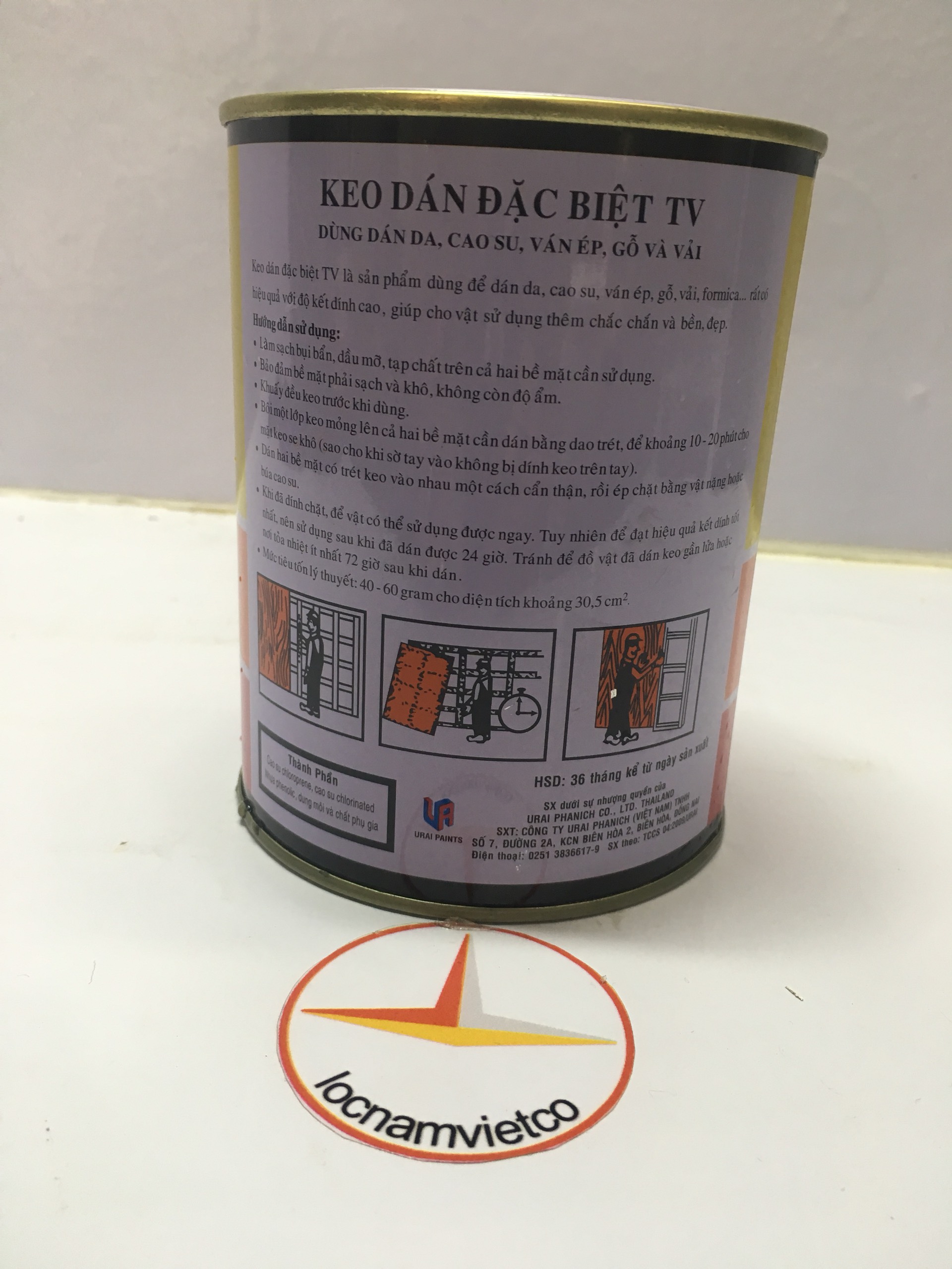Keo dán đặc biệt TV dán giày, đồ da, đồ gỗ hiệu quả nhất 630ML Keo dán đặc biệt TV dán giày, đồ da, đồ gỗ hiệu quả nhất 630ML Giới thiệu DÙNG DÁN DA, CAO SU, VÁN ÉP, GỖ VÀ VẢI Keo dán đặc biệt TV là sản phẩm dùng để dán da, cao su, ván ép, gỗ, vải, rất có hiệu quả với độ kết dính cao, giúp cho vật sử dụng thêm chắc chắn và bền, đẹp. Thành phần: Cao su chloroprene, cao su chlorinated, nhựa phenolic, dung môi và chất phụ gia. Hướng dẫn sử dụng: