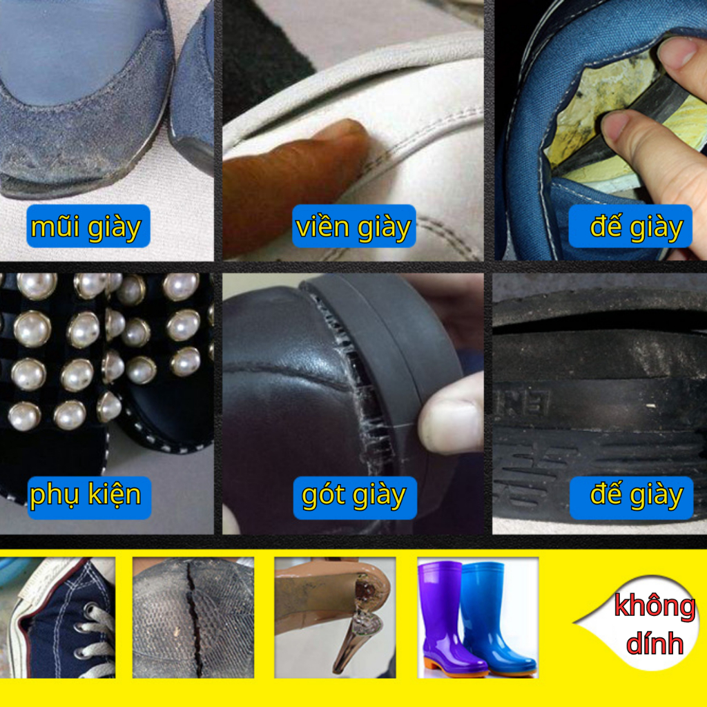 Keo dán giày cao cấp chuyên dụng, siêu dính, siêu chắc. Ngoài sử dụng cho giày bạn có thể sử dụng cho các vật liệu, sản phẩm tương đương. Phù hợp (giày thể thao, giày cao gót, giày da...)
