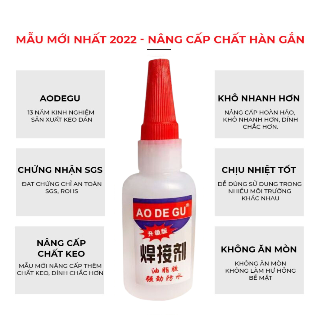------------ TÍNH NĂNG NỔI BẬT -------------MẪU MỚI 2022: Tăng cường thêm chất kết dính mạnh mẽ hơn, bền chặt hơnNHANH KHÔ: Keo khô nhanh chóng chỉ 30s là hiệu quả tức thì.HÀN GẮN ĐA DẠNG CHẤT LIỆU...