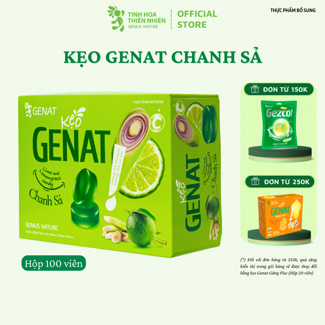 Combo 3 hộp 100 viên - TPBS Kẹo thảo mộc Gezcol - Kẹo Genat Gừng - Kẹo ngậm Chanh sả - Genat - Tinh hoa thiên nhiên 1. Thực phẩm bổ sung kẹo thảo mộc