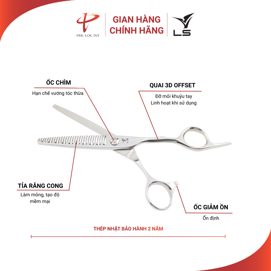 Với kiểu lưỡi răng lược và kích thước 6.0, sản phẩm rất phù hợp với kỹ thuật làm mỏng và tạo tầng lớp. Dòng kéo cắt tóc cao cấp LS luôn đảm bảo chất lượng (cắt không chạy tóc). Sản phẩm được đánh bóng qua gần một trăm bước vì vậy rất bóng, mịn và sang trọng.