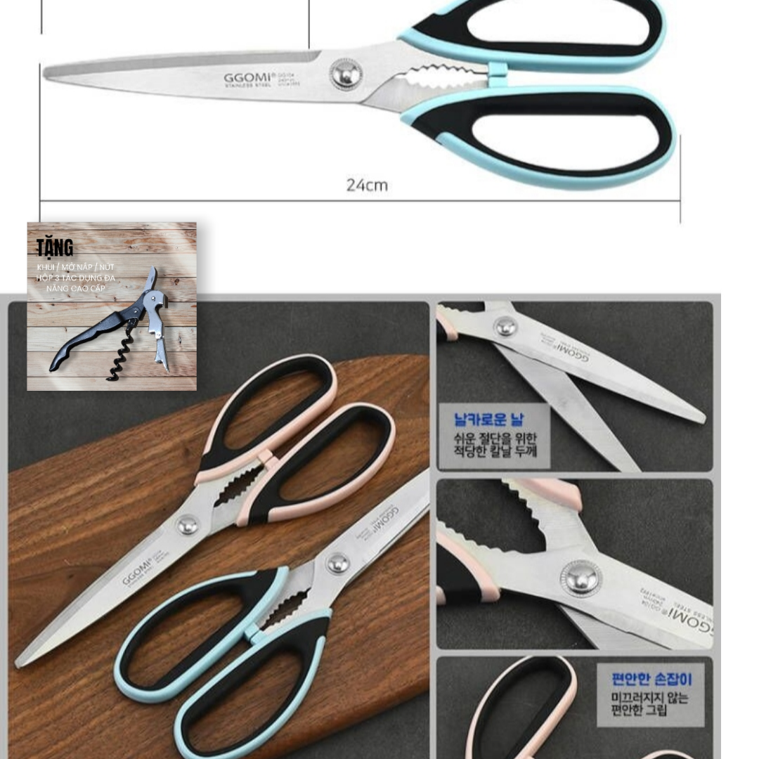 ✨Kéo Xịn GGOMI Hàn Quốc Nhà Bếp Kéo Cắt Gà Cắt Đồ Đa Năng Cao Cấp ( Tặng Khui Hộp 3 in 1 )