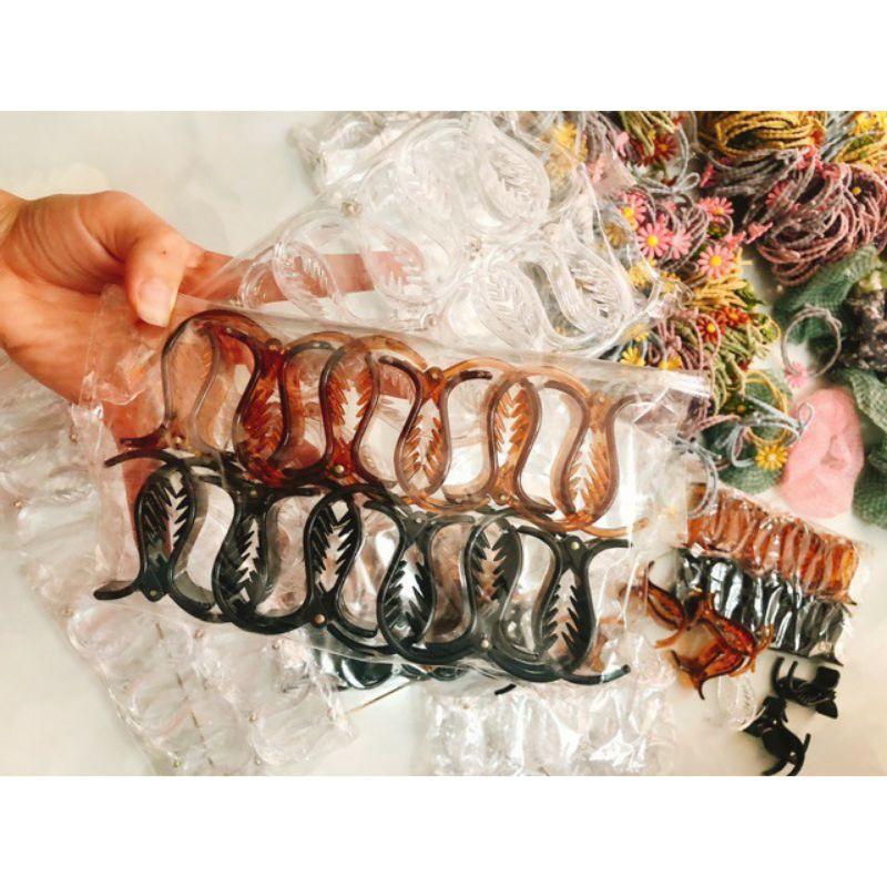 Mua tại Tiktok- Thông tin chi tiết sản phẩm : Kẹp càng cua (kẹp tóc 3 chấu, cặp tóc) ️ Sản phẩm bằng nhựa,bền,chắc,đẹp. ️ Hàng loại 1 không lo bị gãy ️ Màu sắc: Shop giao màu ngẫu nhiên ️ Thiết kế xương cá đơn giản, thời trang, giữ chặt tóc, gọn,nhẹ. ️ Sản phẩm phù hợp các mọi lứa tuổi. Cách búi tóc bằng kẹp càng cua. Kẹp càng cua là một trong những loại kẹp tóc dùng phổ biến nhất hiện nay vì nó gọn nhẹ, dễ sử dụng và giá rẻ. Có 3 cách búi tóc bằng kẹp càng cua thường gặp nhất, đó là : Cách 1 : Túm cả mái tóc, sau đó vặn xoắn nó từ dưới lên trên. Dùng một chiếc kẹp càng cua dài cỡ lớn để kẹp nó lại. Nếu tóc của bạn dài quá thì lại gập nó xuống từ trên xuống dưới rồi mới kẹp, trông tóc sẽ gọn gàng hơn. Cách 2 : Chải tóc, vuốt lên cao sau đó xoắn nó lại, vừa xoắn vừa quấn quanh thành vòng tròn, sau đó dùng kẹp càng cua kẹp phần đuôi tóc còn thừa lại. Cách 3 : Cũng chải tóc rồi vuốt lên cao, dùng một chiếc chun nhỏ buộc lại cho chắc chắn, giống như tóc đuôi gà. Sau đó vấn tóc (cuộn tóc) lại vào phía trong, từ ngoài vào trong giống như chữ O. Cuối cùng là dùng kẹp càng cua kẹp phần tóc đã buộc với phần đã cuộn.
