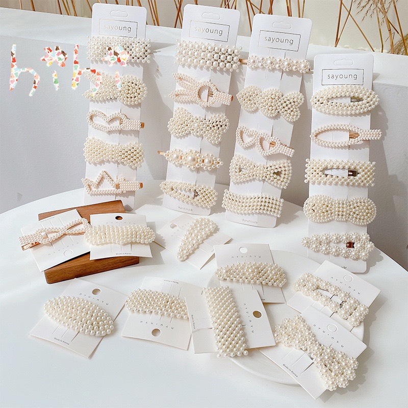 Set 5 kẹp tóc đính ngọc trai cực sang trọng kiểu vintage