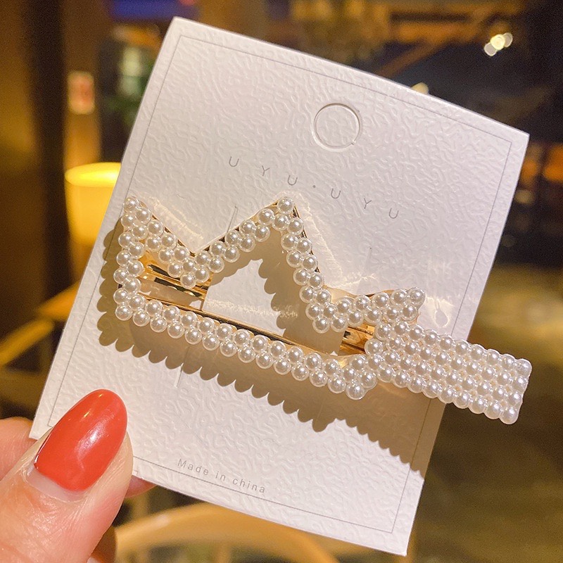✨Kẹp Tóc Hợp Kim Hình Học Đính Ngọc Trai Phong Cách Hàn Quốc Cho Nữ