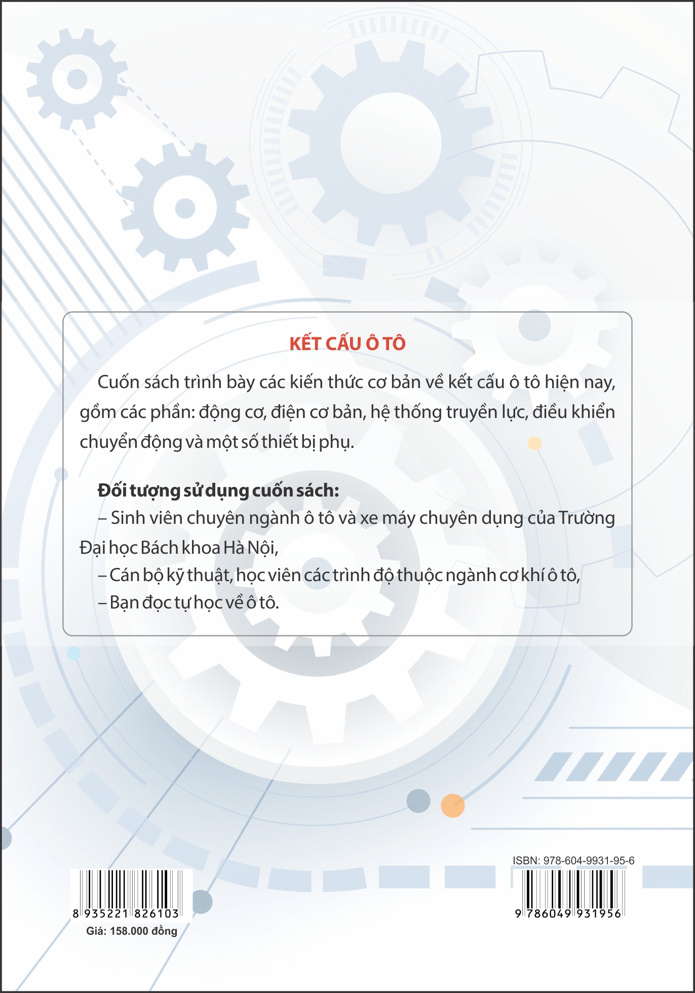 Kết cấu ô tô - Tác giả: Tập thể tác giả Kết cấu ô tô là cuốn sách trình bày về cấu tạo, nguyên lý làm việc của các hệ thống, cụm, bộ phận, chi tiết của ô tô con, ô tô chở người, ô tô tải, ô tô chuyên dụng. Các kết cấu đề cập trong sách được định hướng theo tính cơ bản và hiện đại. Cuốn sách được dùng làm giáo trình cho sinh viên ngành Cơ khí động lực và tài liệu tham khảo cho các cấp độ học viên trong và ngoài chuyên ngành liên quan tới công nghệ ô tô. Sách đồng thời có thể dùng trong các khóa đào tạo cao đẳng, trung cấp, công nhân kỹ thuật của chuyên ngành ô tô máy kéo và là tài liệu tự học cho cán bộ kỹ thuật trong và ngoài chuyên ngành, nhằm xây dựng các hiểu biết về cấu trúc của ô tô theo định hướng: thiết kế chế tạo và khai thác sử dụng các loại ô tô đang dùng ở nước ta. Cuốn sách được xây dựng trên cơ sở chọn lọc từ các tài liệu cơ bản trong đào tạo kỹ sư chuyên ngành của các quốc gia có thế mạnh về công nghiệp ô tô, tài liệu sử dụng sửa chữa của các hãng sản xuất ô tô hiện đang dùng ở Việt Nam. Toàn bộ sách bao gồm 17 chương, với các nội dung: động cơ trên ô tô, điện cơ bản, hệ thống truyền lực, các hệ thống chuyển động và điều khiển chuyển động, một số thiết bị phụ của ô tô.