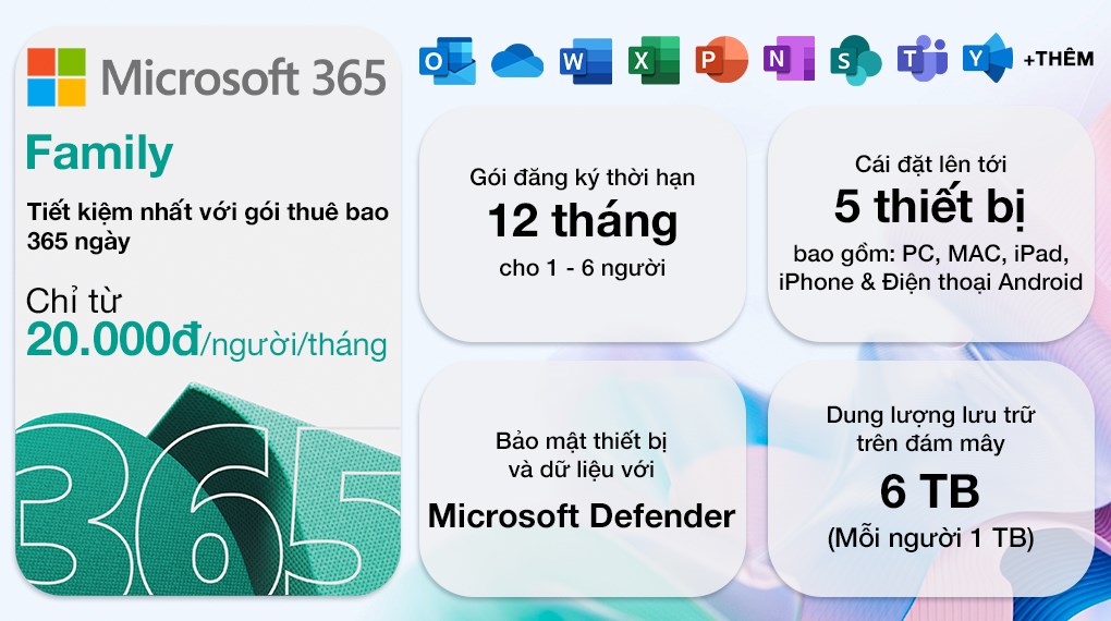 Khám Phá Microsoft 365 Family – Giải Pháp Phần Mềm Văn Phòng Toàn Diện Cho Cả Gia Đình hay nhóm tối đa 6 người! Microsoft 365 Family là gói phần mềm văn phòng toàn diện từ Microsoft, được thiết kế đặc biệt để phục vụ cho nhu cầu cùng lúc của 6 người. Với bộ công cụ mạnh mẽ và tính năng vượt trội, Microsoft 365 Family không chỉ hỗ trợ công việc hiệu quả mà còn mang lại trải nghiệm công nghệ tiên tiến cho tổng 6 thành viên trong gia đình hoặc nhóm.