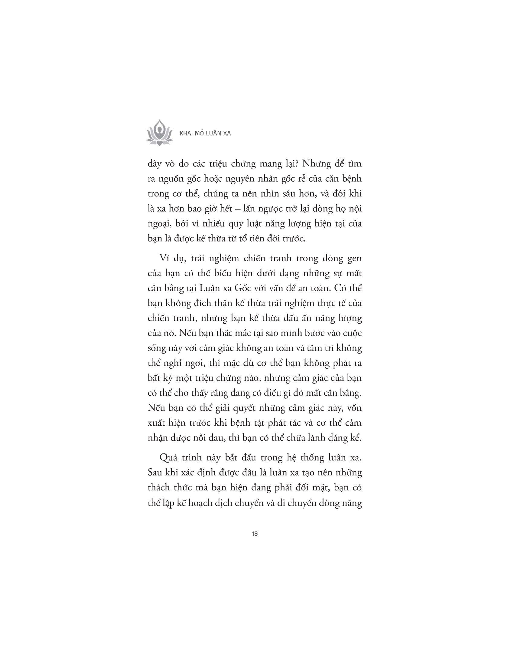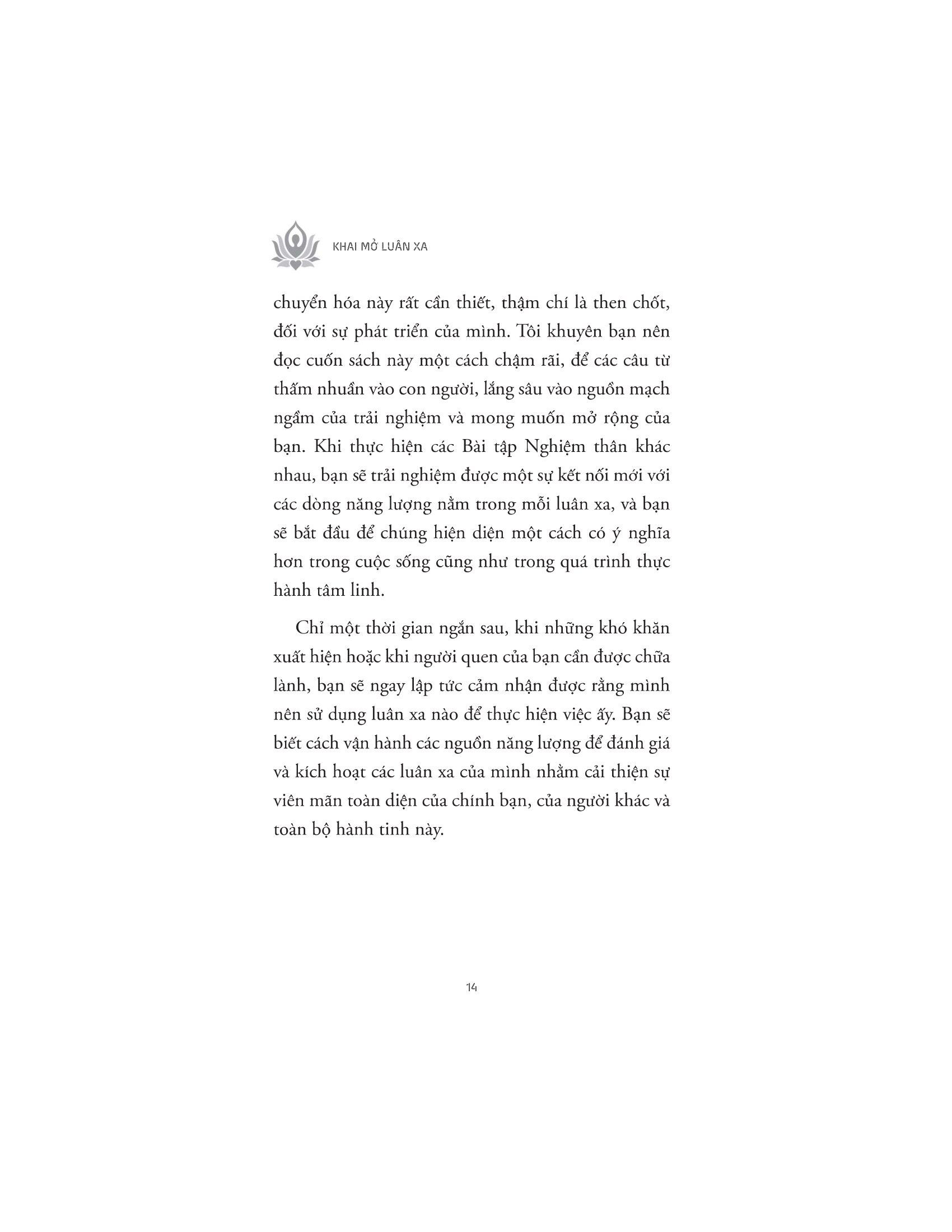 Mỗi chương sách còn bao gồm các bài tập để độc giả có thể tiếp cận năng lượng của từng luân xa, bao gồm thiền định, viết nhật ký hoặc làm việc với người hướng dẫn tinh thần.