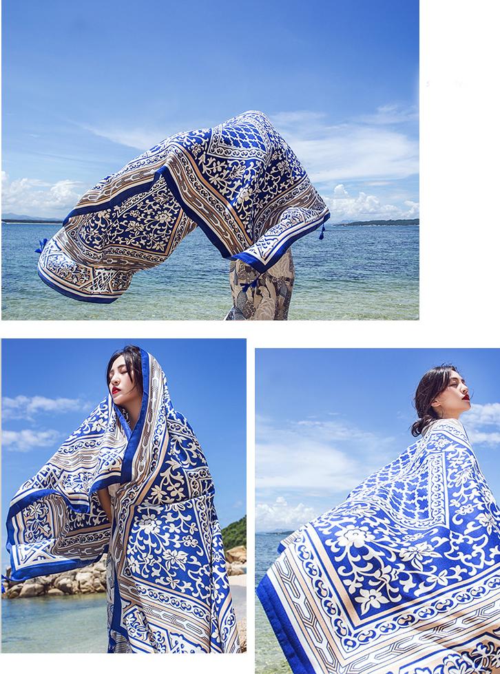 Khăn có kích thước 190 x 95cm, với kích thước này ngoài việc dùng với bikini khi đi biển, bạn có thể sử dụng biến hóa thành những chiếc chân váy maxi, hay là đầm hở lưng khoe trọn phần lưng ong.