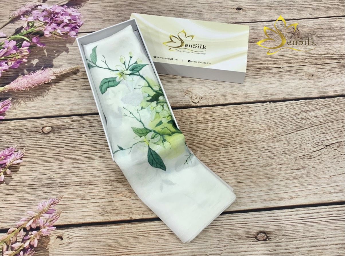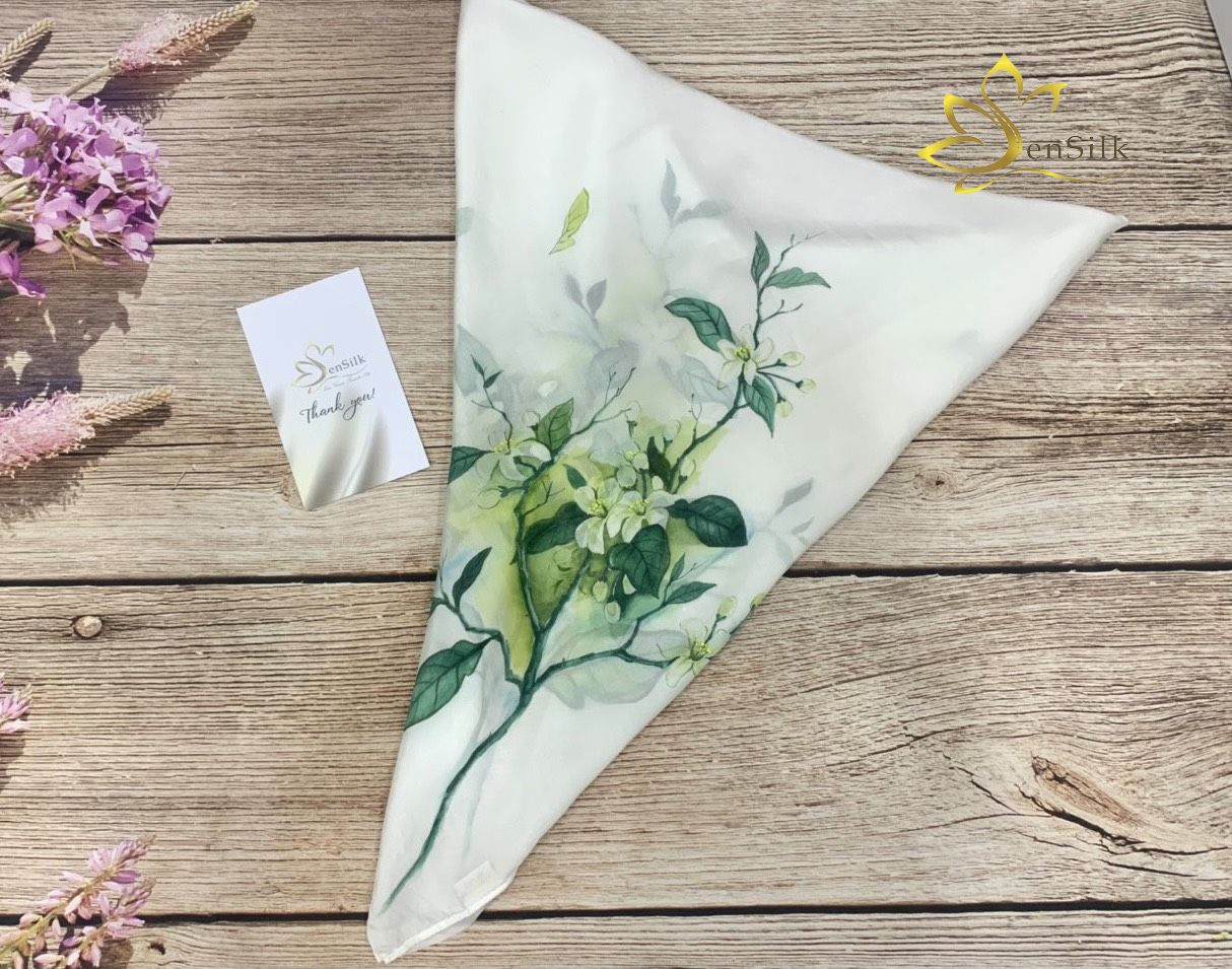 Khăn Vuông Vẽ Tay Hoa Bưởi - SenSilk - Top Trend Noel 2023