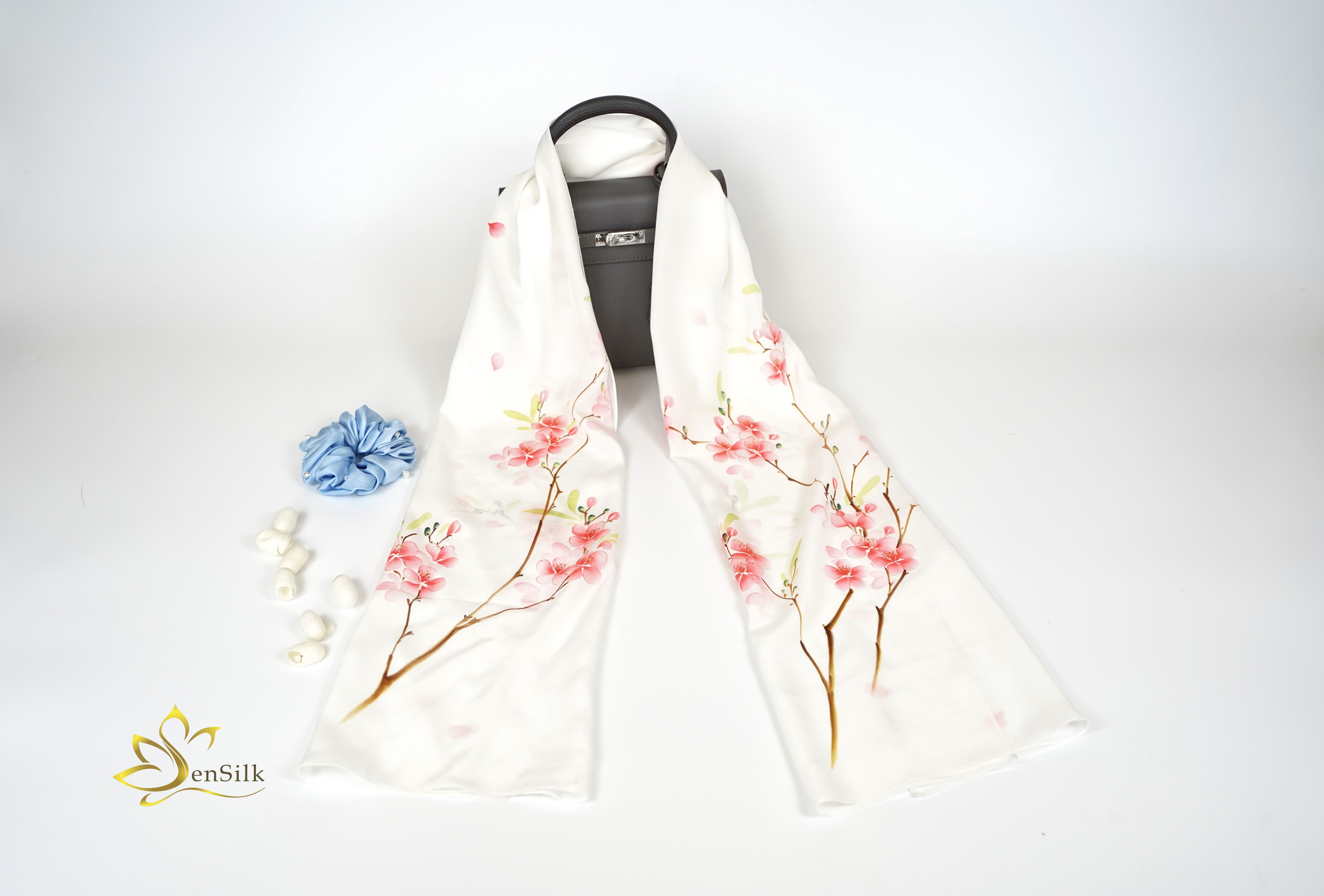 ✨Khăn Lụa Tơ Tằm Vẽ Hoa Đào - SenSilk - Quà Tết Truyền Thống Việt Nam, Phụ Kiện Thời Trang Nữ Cao Cấp 160x55cm, Silk Painting Scarves, Tinh Hoa Làng Nghề, Top Fashionista Scarf For Women