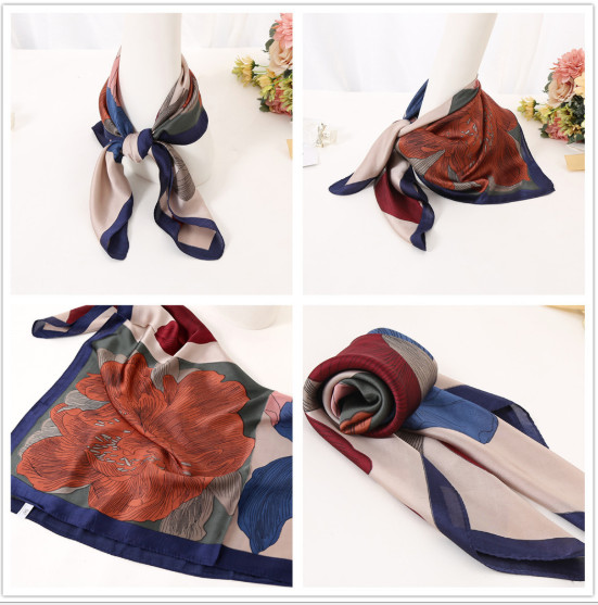 ✨Khăn lụa turban, khăn cổ vuông 70x70 họa tiết hoa siêu xinh Kc03