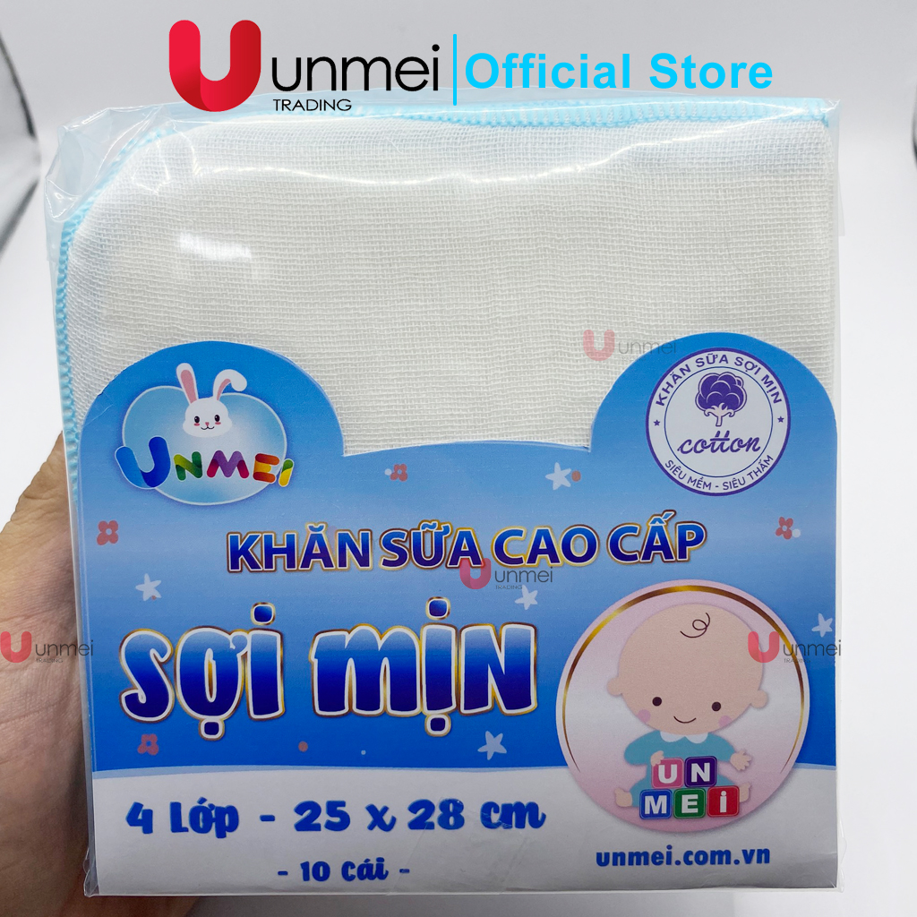 Khăn sữa Unmei 100% cotton cao cấp tiêu chuẩn xuất Nhật, dành cho trẻ sơ sinh. An toàn cho bé, được các mẹ trên toàn quốc tin dùng. - Đường viền của khăn cuốn biên bằng sợi chỉ tơ mềm mại an toàn cho bé.
