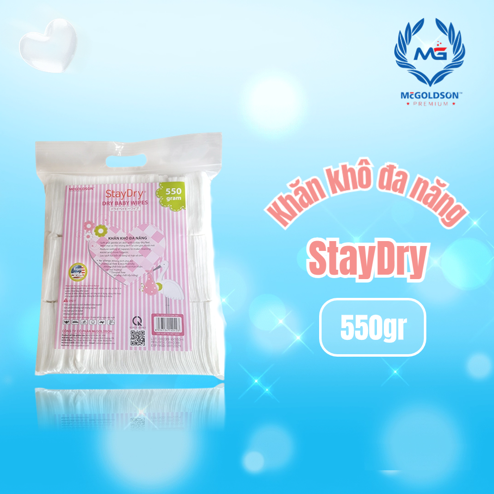 - Sản phẩm khăn giấy khô đến từ nhà StayDry có độ dày và độ dai cao kết hợp cùng khả năng thấm hút tốt là lựa chọn sáng giá giúp mẹ vệ sinh da cho bé mỗi khi thay tã, lau bụi bẩn,...
