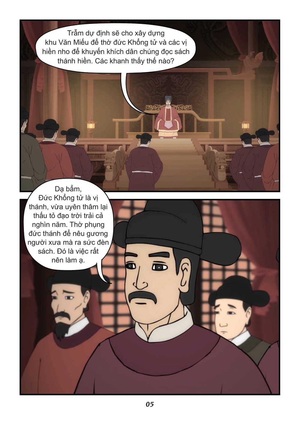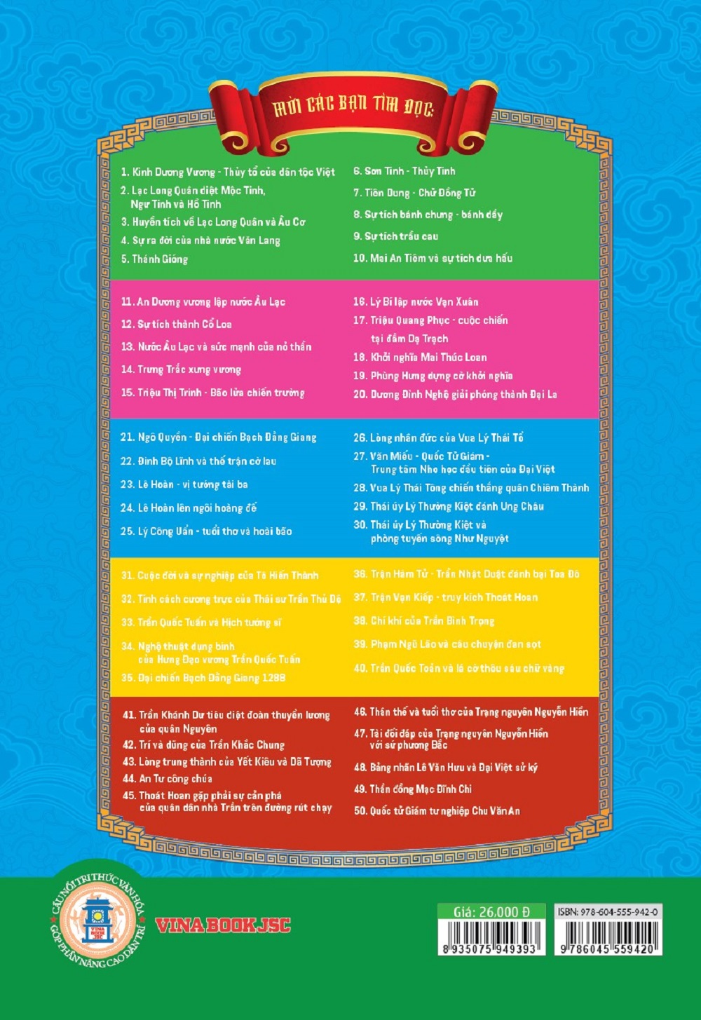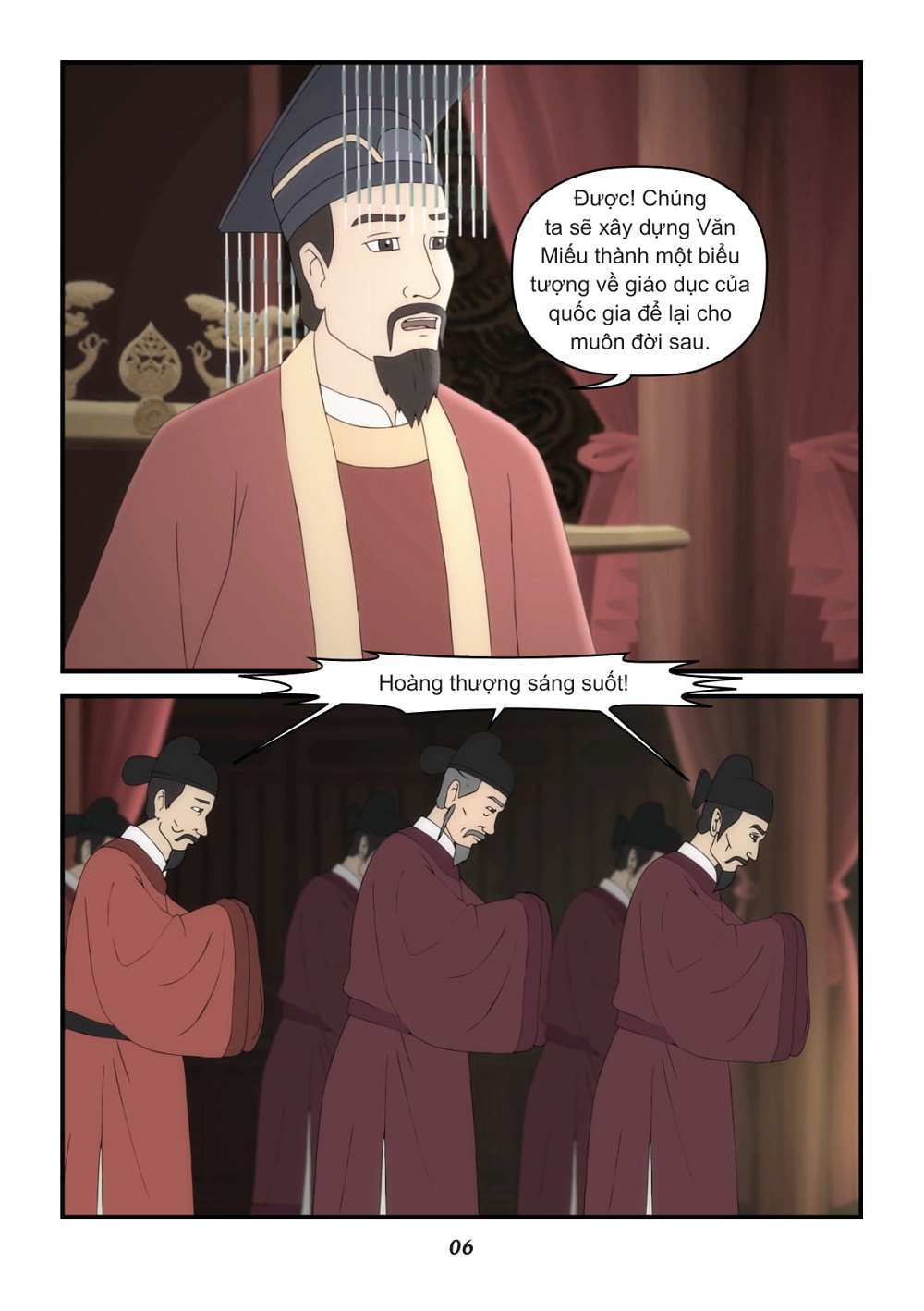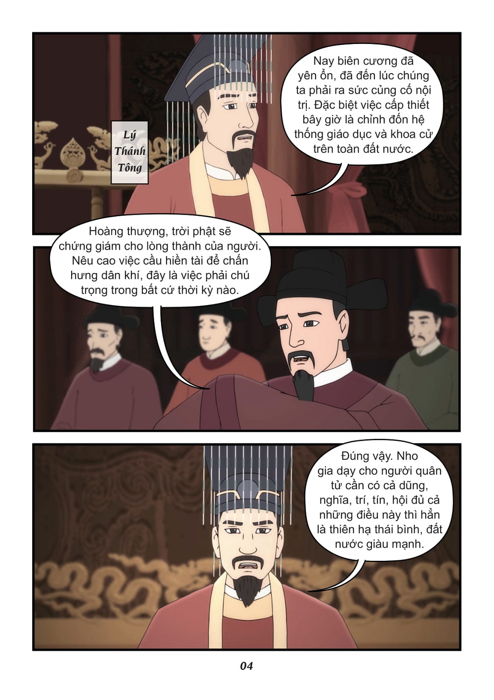 Bộ sách “Truyện tranh lịch sử Việt Nam – Khát vọng non sông” gồm hàng trăm tập, giới thiệu ngắn gọn, sinh động những truyền thuyết đầy tính nhân văn và những sự kiện, những nhân vật nổi tiếng trong lịch sử hàng nghìn năm của dân tộc Việt Nam. Văn Miếu Quốc Tử Giám-Trung tâm Nho học đầu tiên của Đại Việt, là quần thể di tích hàng đầu của thủ đô Hà Nội, được vua Lý Thánh Tông xây dựng năm 1070 để thờ Khổng Tử, là nơi đào tạo hàng nghìn nhân tài cho đất nước, biểu tượng cho nền khoa cử thời phong kiến ở Việt Nam. Ngày nay, giá trị của 82 tấm bia đá ghi tên các tiến sĩ tại Văn Miếu-Quốc Tử Giám được UNESCO chính thức công nhận là Di sản tư liệu thế giới.