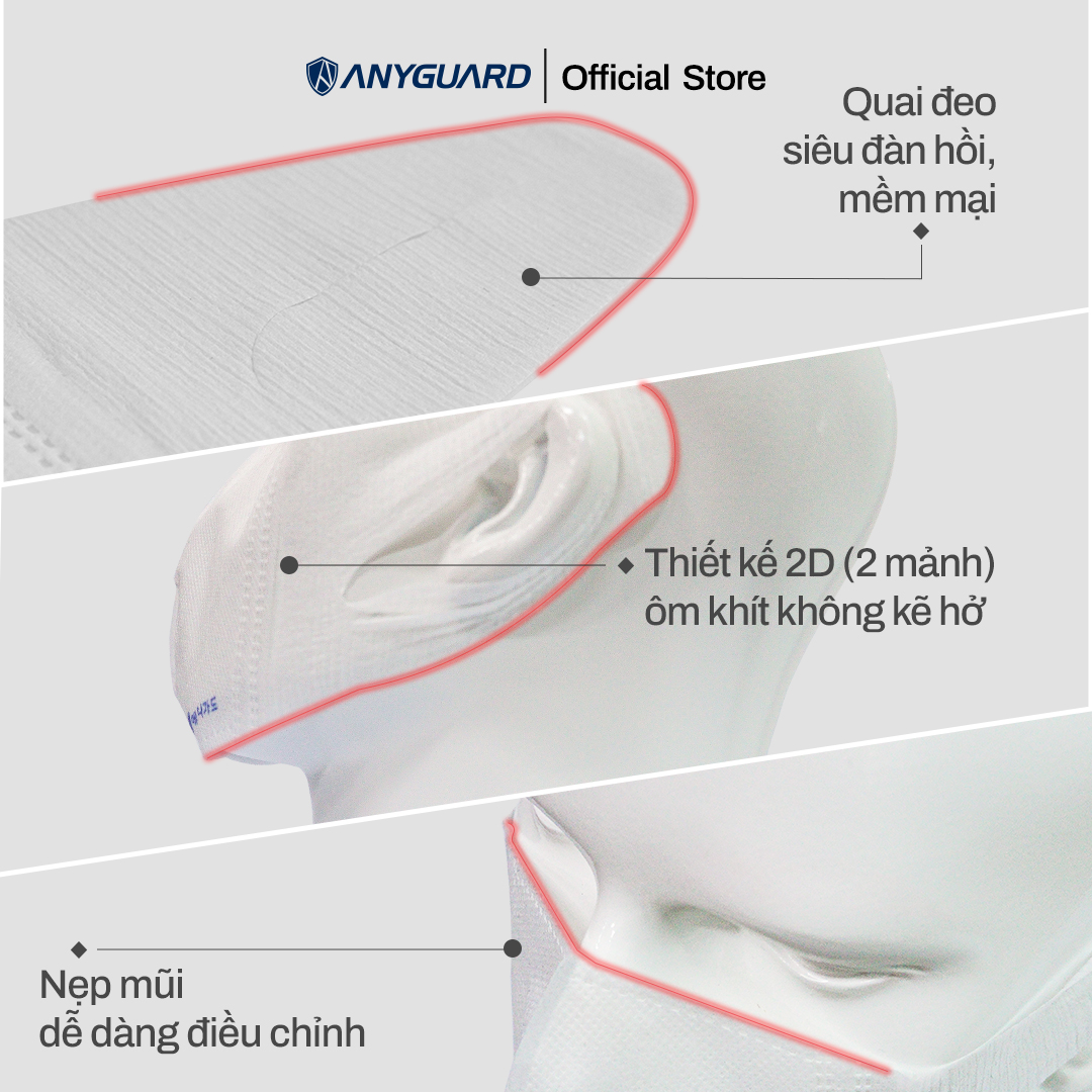 6 ƯU ĐIỂM VƯỢT TRỘI CHỈ CÓ Ở KHẨU TRANG 2D ANYGUARD MASK HÀN QUỐC - QUEO ĐEO SIÊU ĐÀN HỒI CHO NGƯỜI LỚN (HỘP 50 CÁI) - Lọc 99% vi khuẩn với 3 lớp