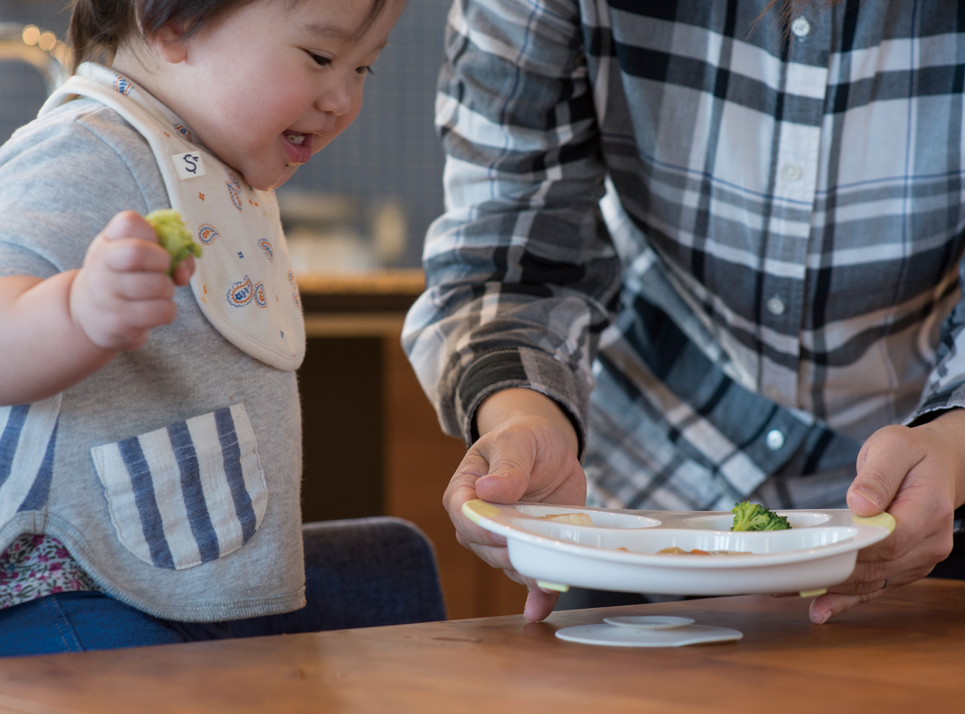 - Kết hợp sử dụng khay cùng với ĐẾ HÍT CHỐNG ĐỔ để tăng hiệu quả khi sử dụng: giữ khay bám chắc chắn, cố định khay thức ăn trên bàn - không bị đổ khi bé quơ/khua tay.