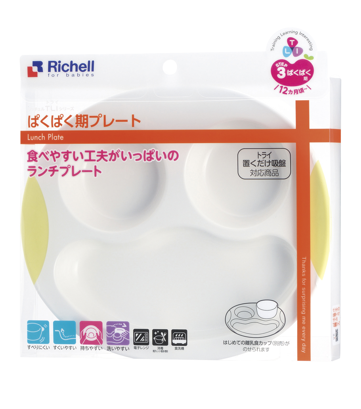 - Có thể dùng Khay ăn Richell T.L.I bước 2 thiết kế hỗ trợ cho bé tập tự ăn với các sản phẩm