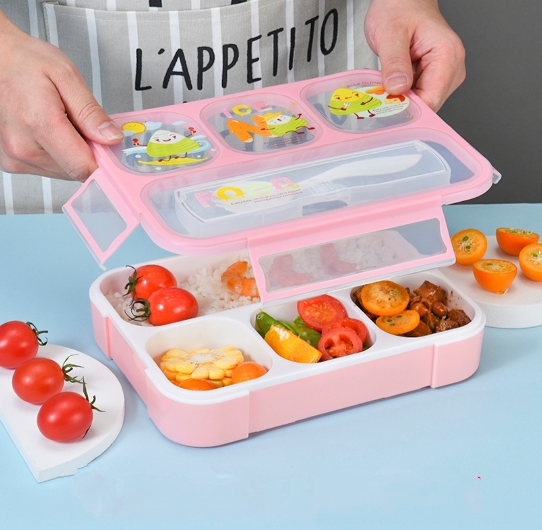 Mua tại Tiktok(hàng cao cấp) Hộp đựng thức ăn rặm 4 ngăn chống dính cho bé ( tặng thìa )