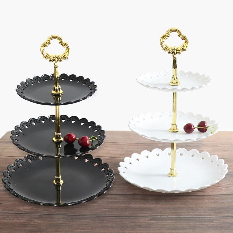 Khay nhựa 3 tầng bao gồm 3 đĩa với các kích thước khác nhau và 03 trụ cùng đệm silicon.