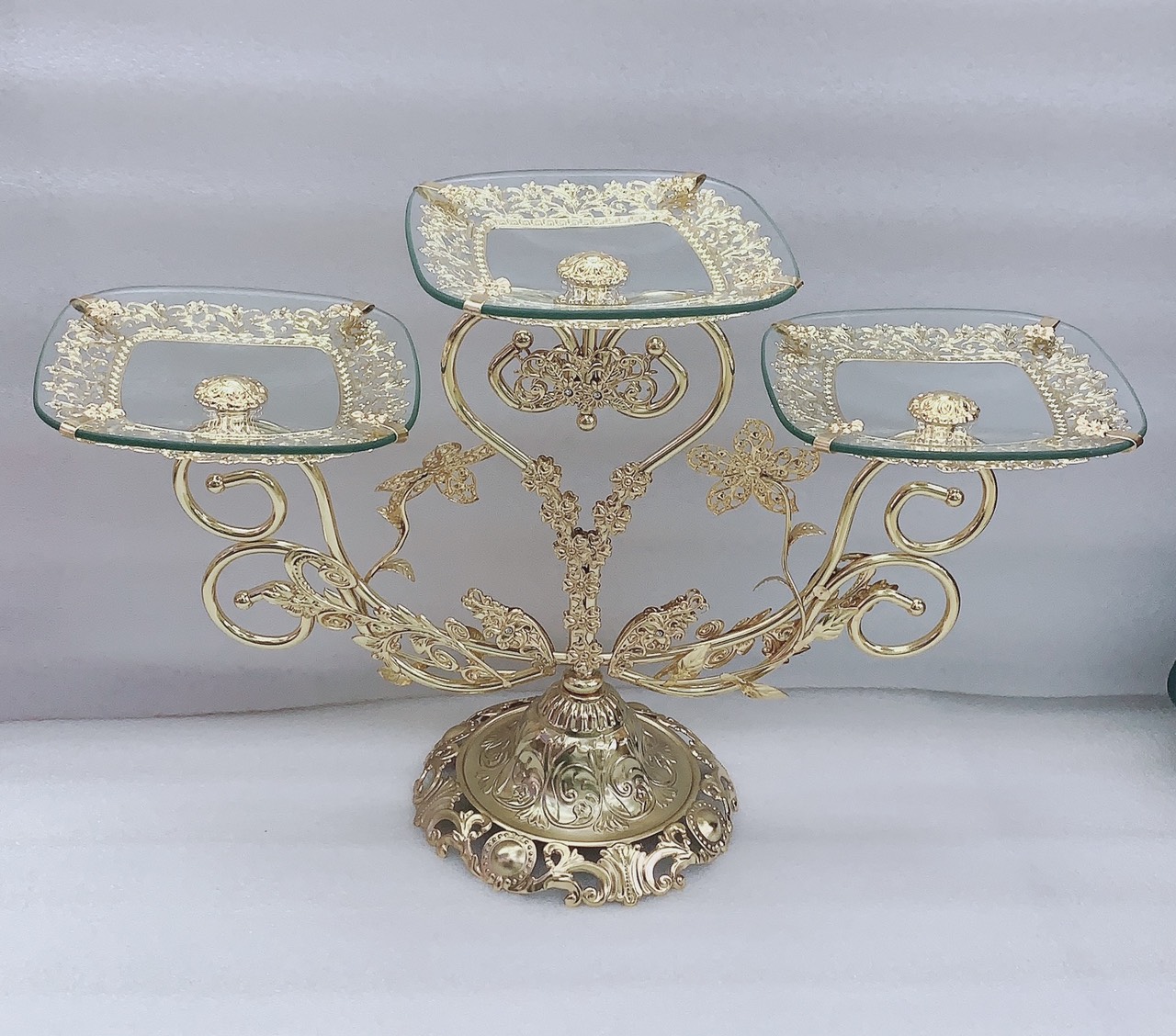 ✨KHAY ĐỰNG BÁNH KẸO HOA QUẢ THỦY TINH 3 TẦNG KHUNG KIM LOẠI - VD28