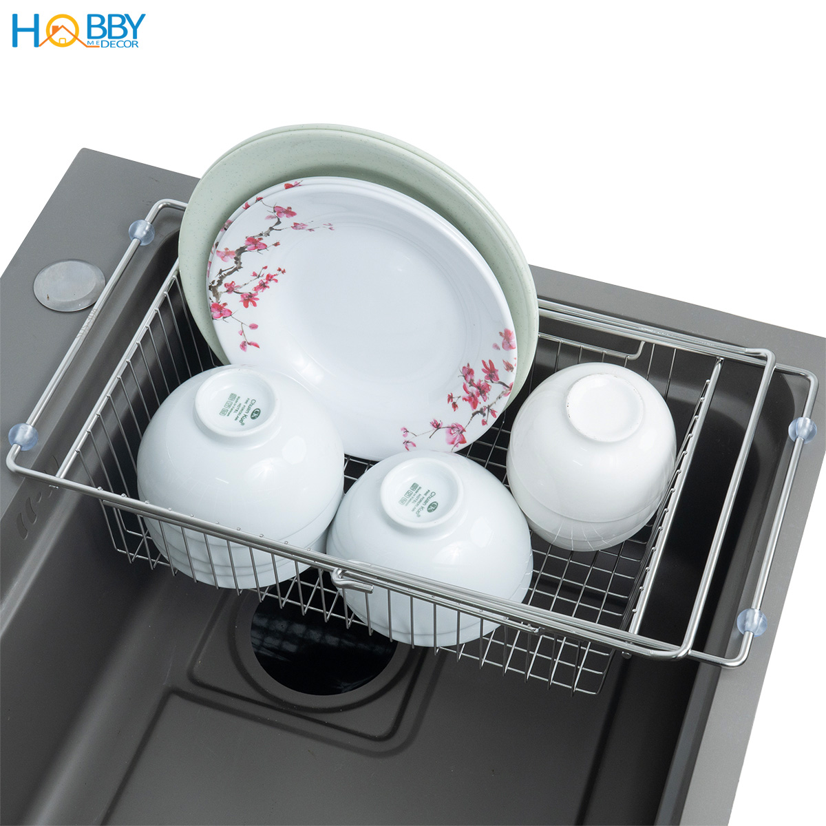 Khay đựng chén đĩa gác chậu rửa chén co giãn Hobby Home Decor KDC5 - Inox 304 không rỉ sét