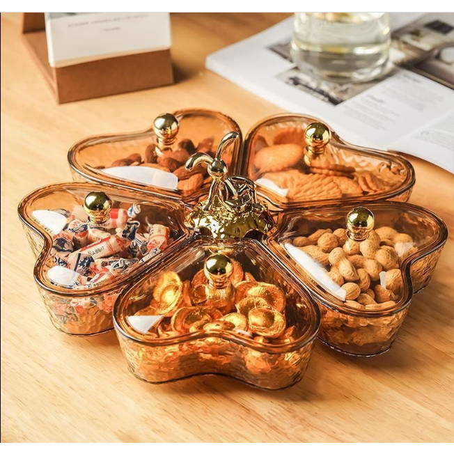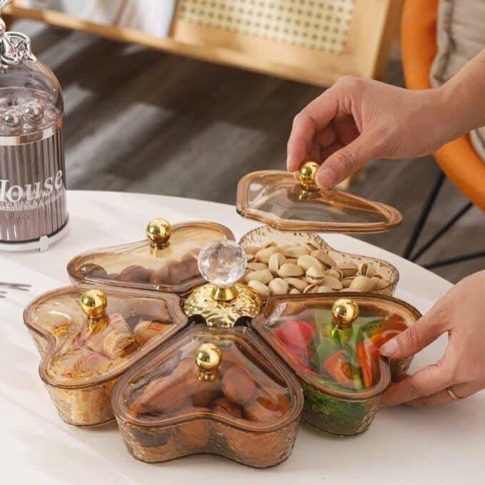 Khay mứt tết, khay đựng bánh kẹo, hoa quả, đồ ăn vặt. Khay mứt 5 cánh sen xoay 360 độ sang trọng
