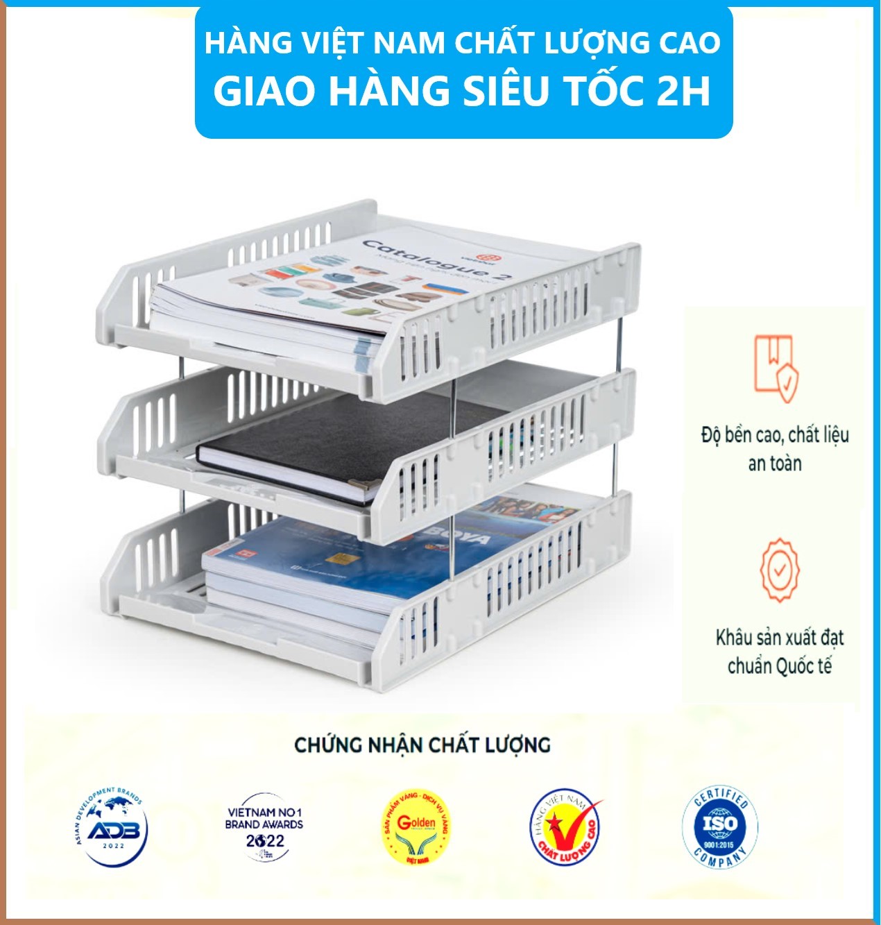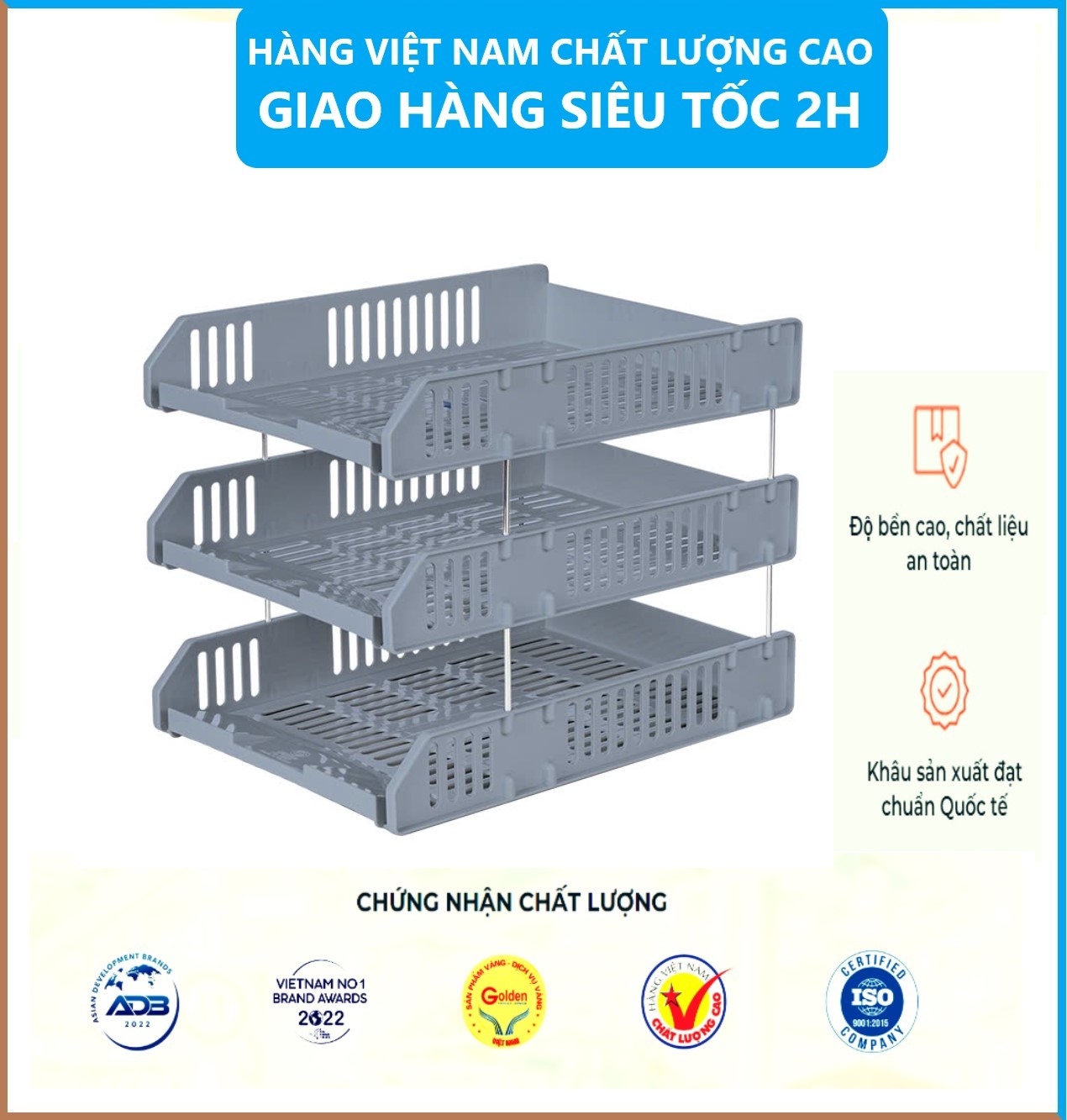 Khay Đựng Tài Liệu 3 Tầng 5683, Kệ Đựng Tài Liệu Văn Phòng Cao Cấp, Khay A4 nhiều ngăn tiện dụng - Hàng Việt Nam