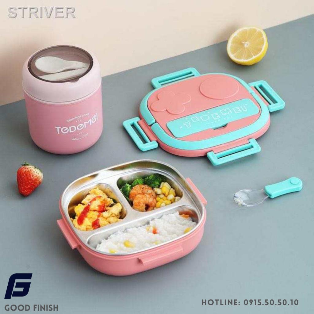 Khay chữ nhật đựng Cơm,Canh,Sup Giữ Nhiệt, Ruột Inox 304, không gỉ, an toàn sử dụng - Khay Cơm Văn Phòng
